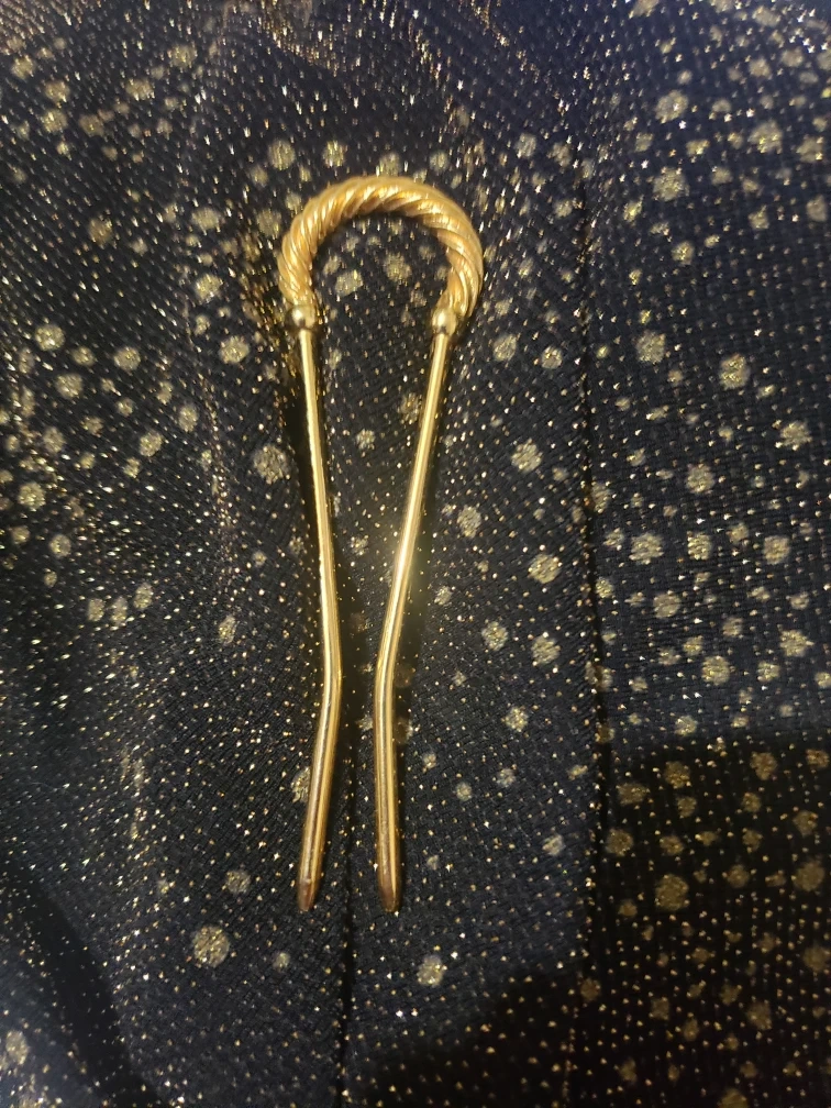 A simple gold tone hair pin to keep your hair up and out of your face!