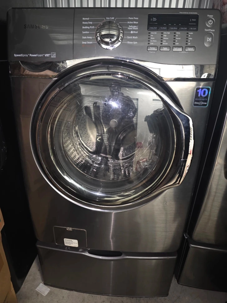 Selling to Samsung SpeedSpray PowerFoam VRT washer and dryer. It has a steam function and a 10-year Direct Drive motor warranty. This washer is perfect for all your laundry needs!