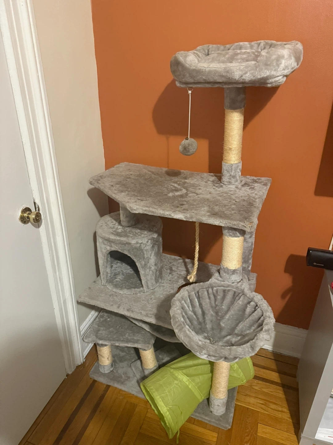 Selling a cat tree in great condition! It features multiple levels for your cat to explore, a scratching post, and even a fun tunnel for them to play in. It's a great way to keep your furry friend entertained and active