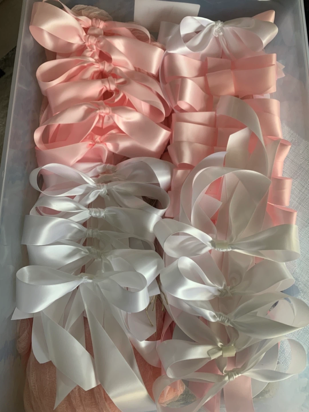 I have a collection of 31 pink and white ribbon bows, and 5 - 12 foot pink cheesecloth table runners available. Perfect for various craft projects, decorations, or gift wrapping! They are in great condition and ready to add a touch of elegance to your creations, and event. Great decor if you’re planning a baby shower.