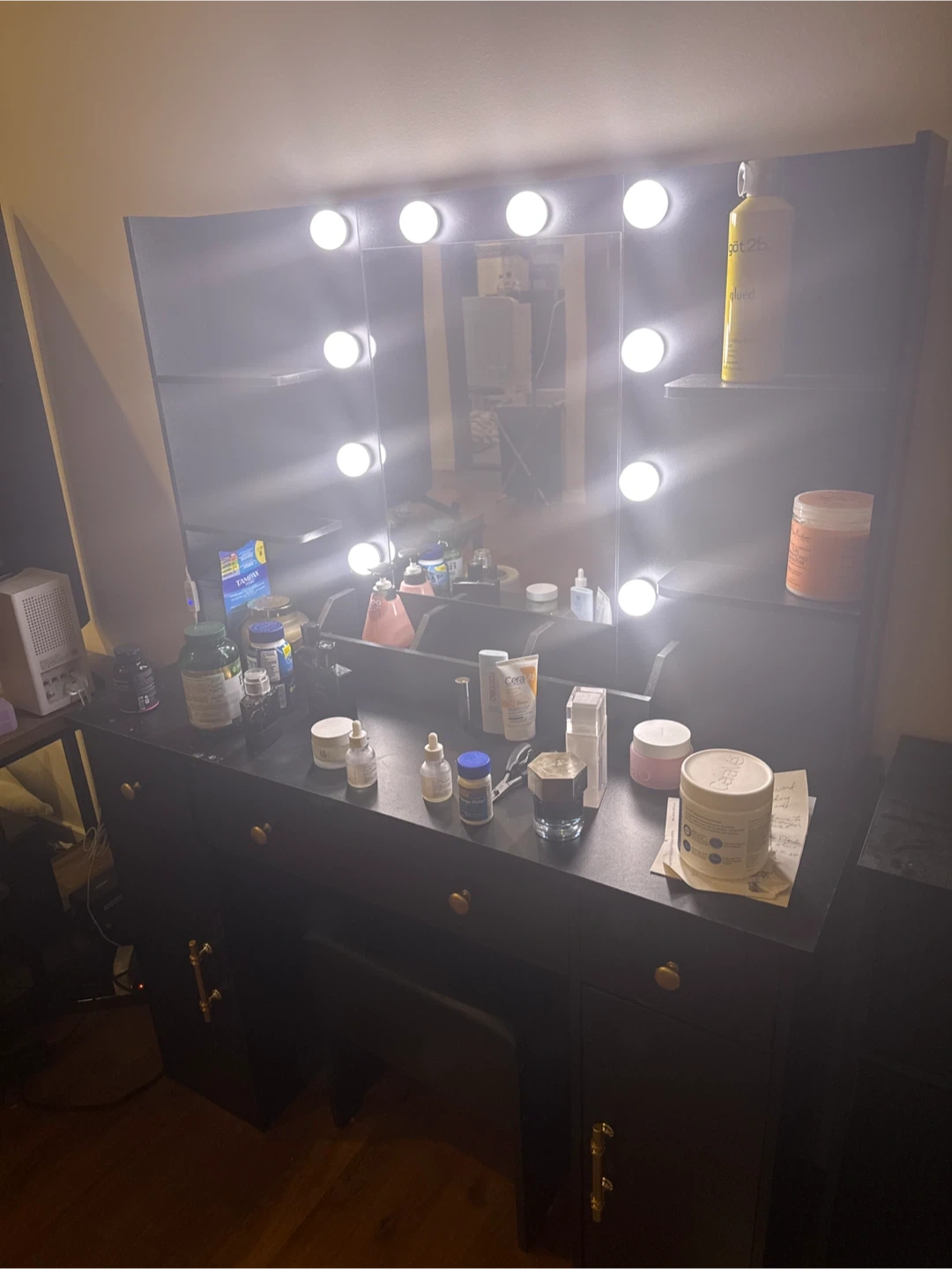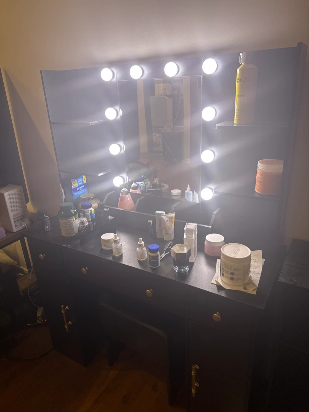 Selling a vanity table with a lighted mirror. It's a great piece for getting ready and adding some extra light to your space. Perfect for makeup and skincare!