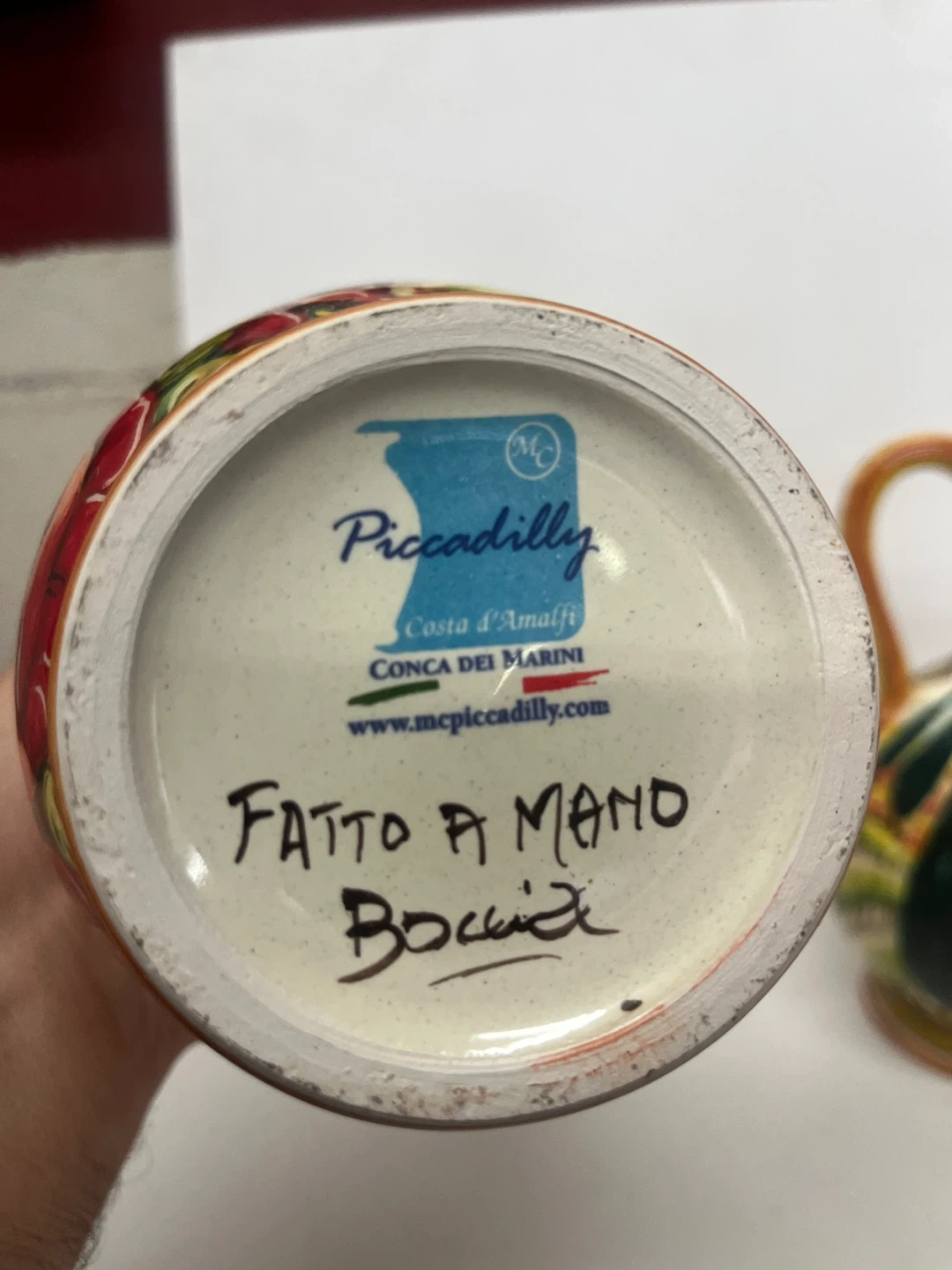 Breathtaking Piccadilly ceramic oil and vinegar set. Hand painted with vibrant color depicting beautiful Amalfi Coast. Makes a great gift! Mint condition. Dishwasher safe.