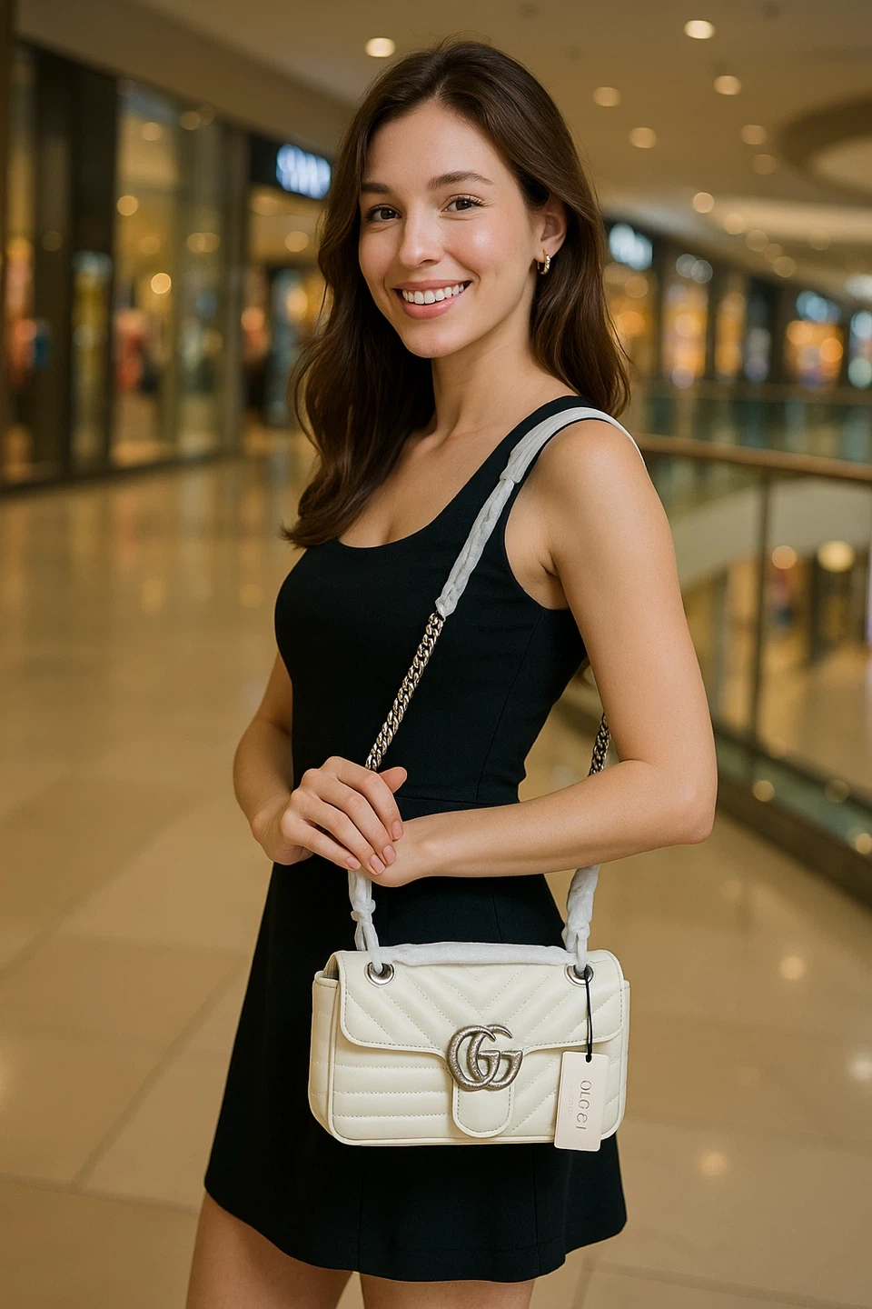 Selling a beautiful, Gucci Marmont mini top handle bag in white! This stylish bag comes with its original dust bag. It's perfect for adding a touch of luxury to any outfit. Don't miss out on this classic piece!
