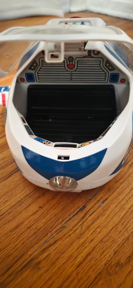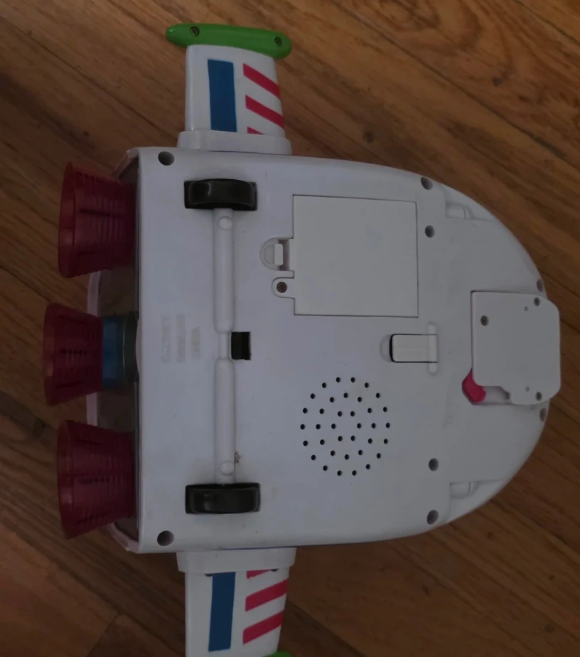 Selling a Buzz Lightyear space ship toy! It's in good condition and ready for a new adventure. It features the iconic Buzz Lightyear logo and design, with a white and blue color scheme. Perfect for any young space explorer or collector!