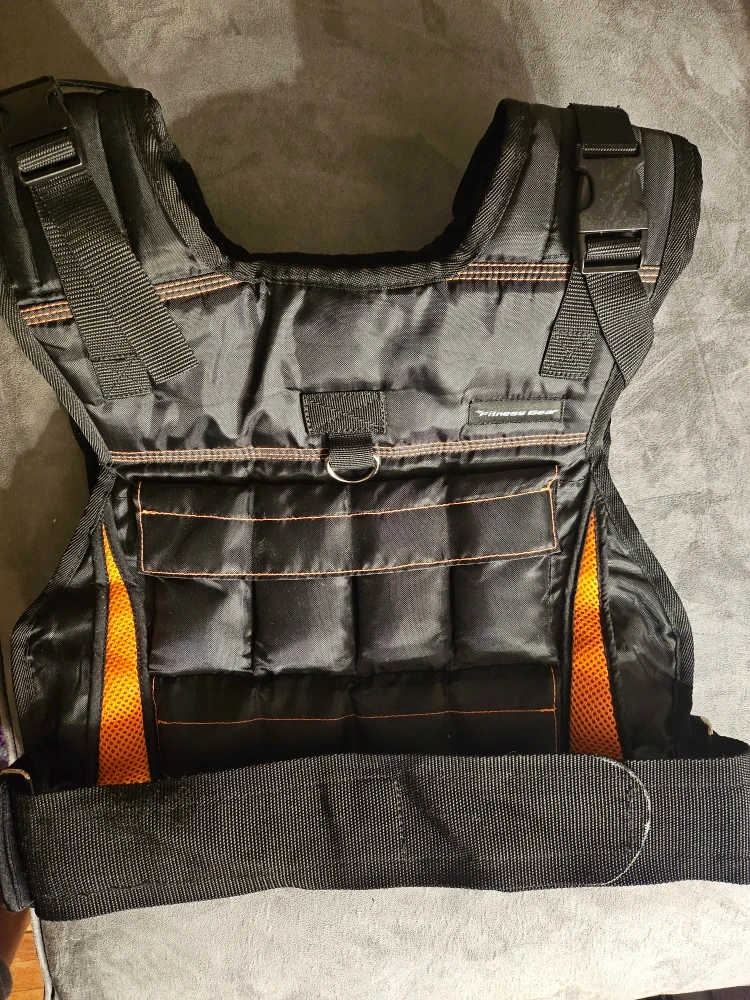 Selling a Fitness Gear weighted vest. It's in great condition and ready for your workouts! This vest is perfect for adding resistance to your training, whether you're running, doing bodyweight exercises, or hitting the gym