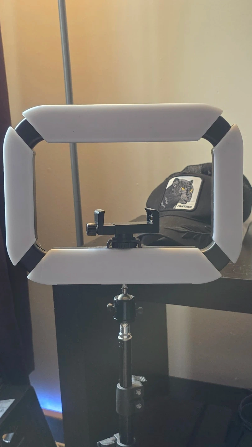 Selling a square LED ring light! It comes with a tripod stand, making it perfect for content creation or video calls. It's in great condition and ready to use