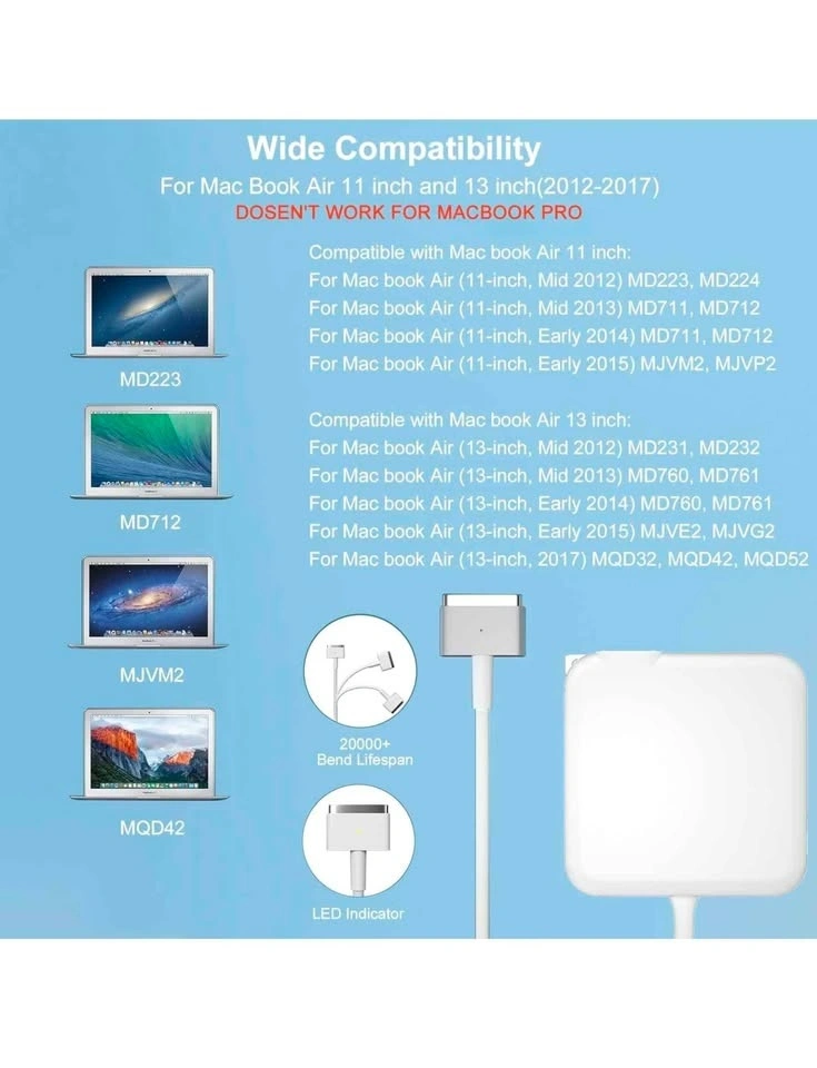 Replacement for Mac Book Air Charger 6FT, 45W