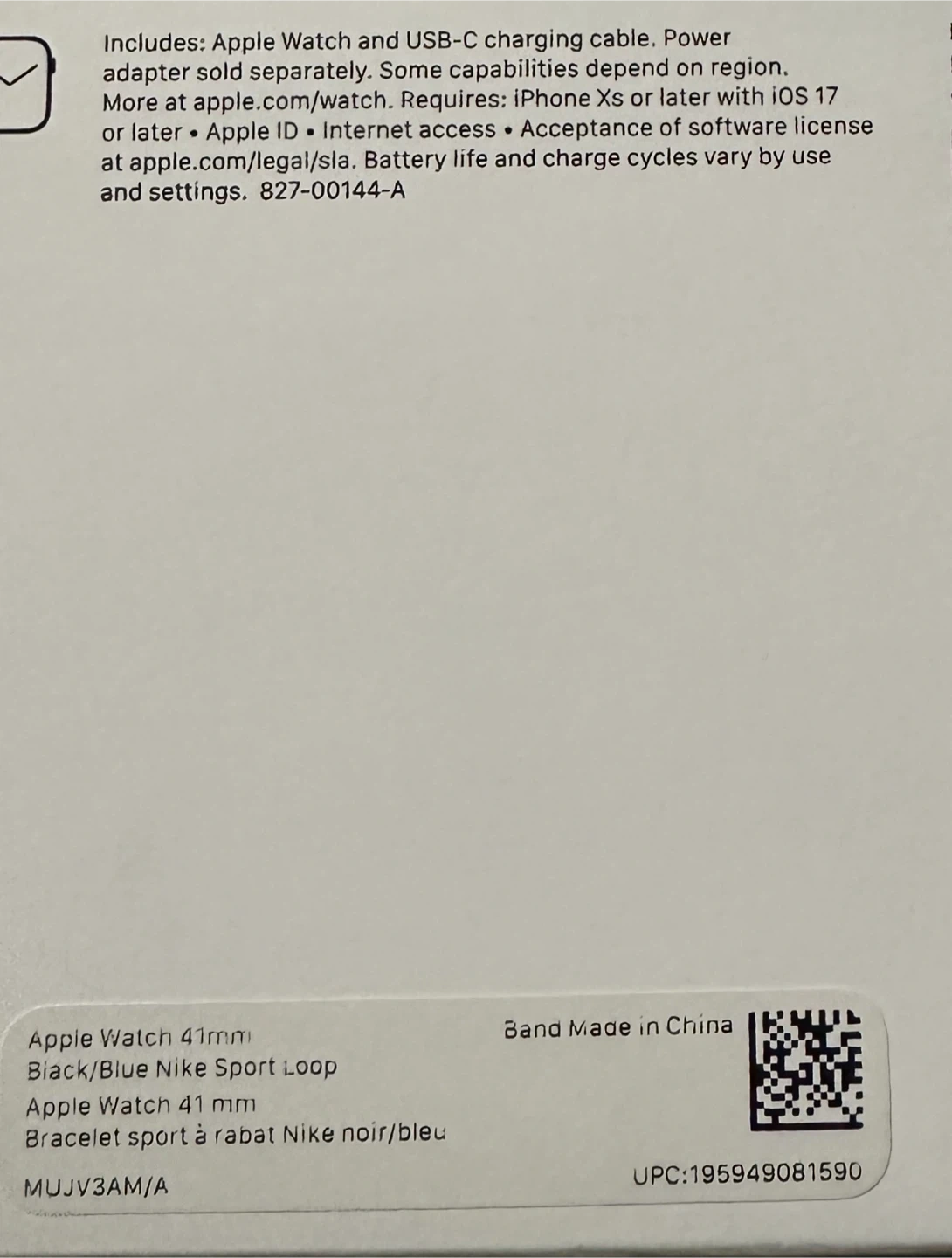 Apple Watch 41mm Black/Blue Nike Sport Loop - New