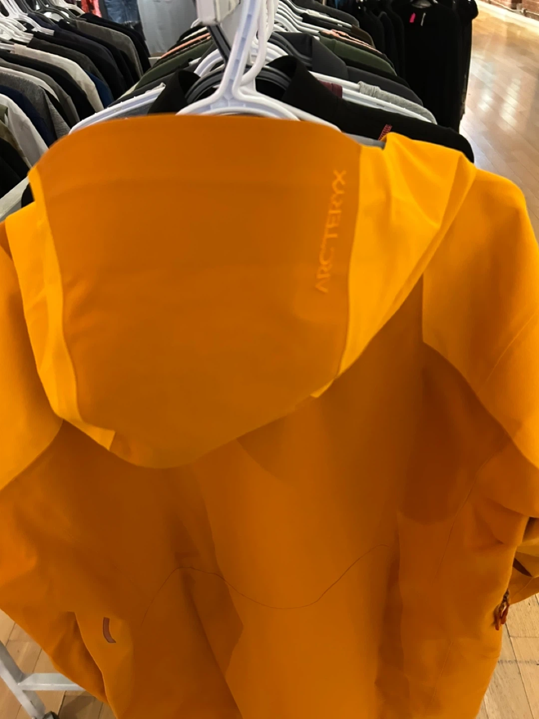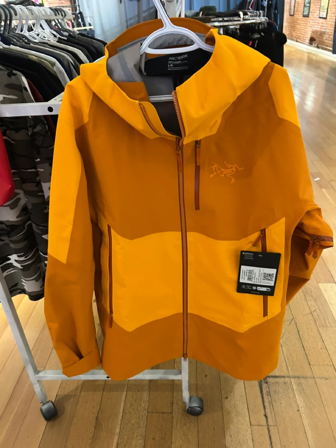 Selling an Arc'teryx Sabre SV Jacket in size Large. The colour is Blaze Copper Sky. Retails for $1100 CAD. This jacket is perfect for staying dry and comfortable in any weather!
