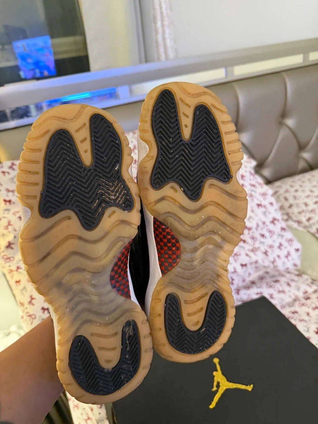 Selling a pair of Air Jordan 11 Retro Low IE sneakers in black. They are in used condition, as shown in the pictures. The original box is included! Size 6 in kids