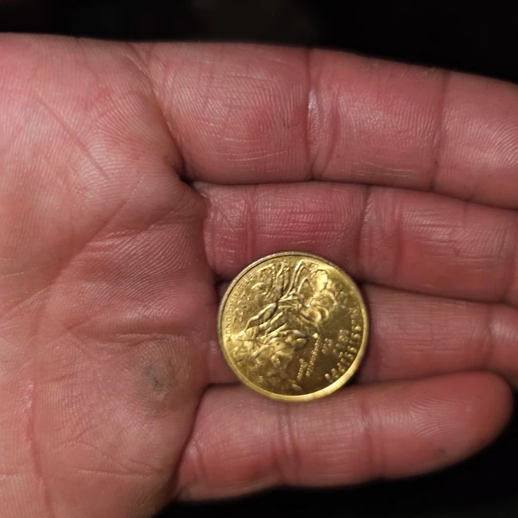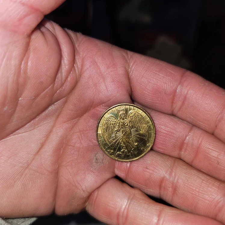 Selling a 2002 Sacagawea one dollar coin. It has a golden color and features the Statue of Liberty on one side and Sacagawea on the other. It's in good condition!