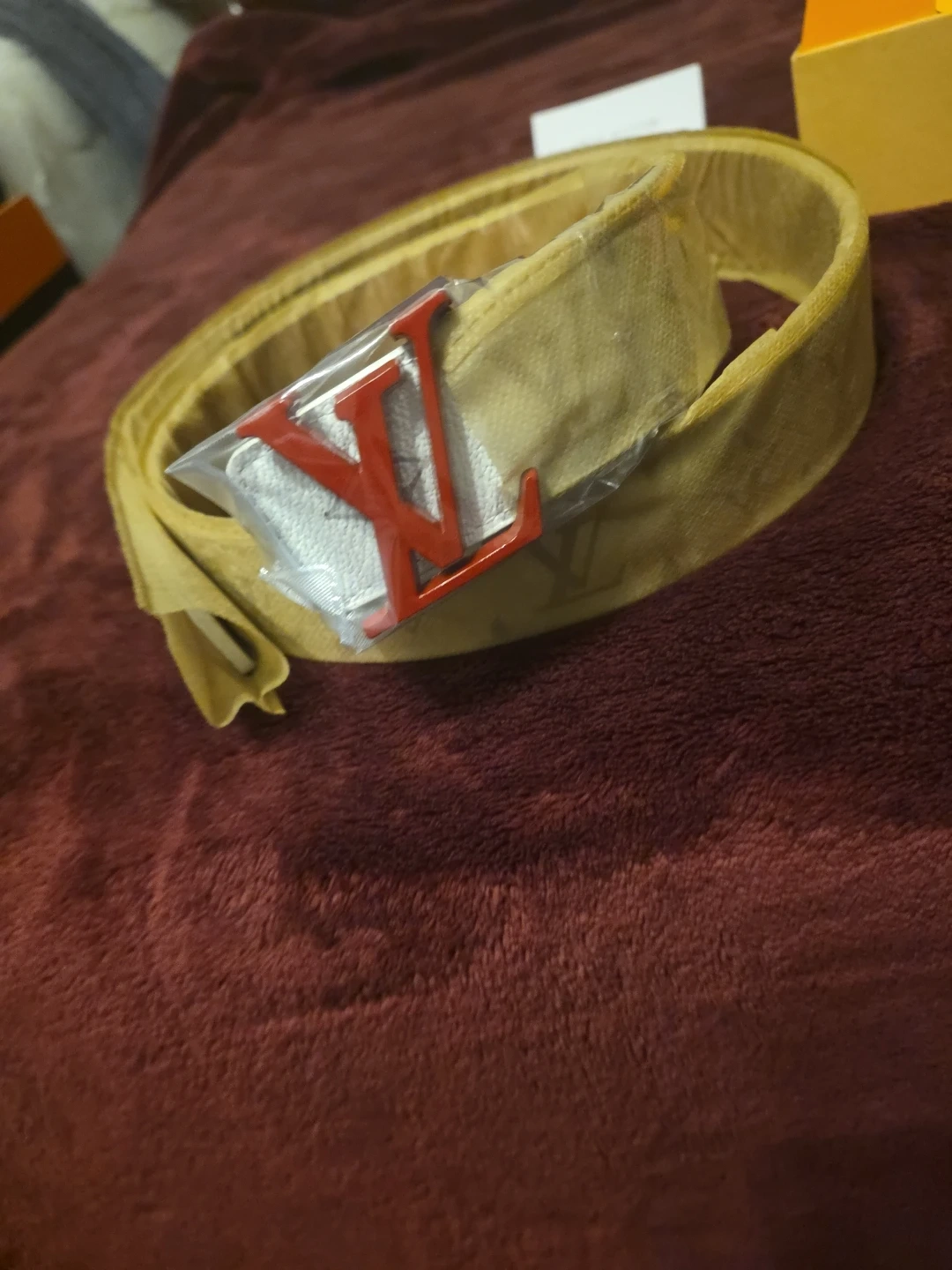Selling a Louis Vuitton belt that comes with its original box. It's in great condition and ready for a new owner! The belt features the iconic LV logo. Perfect for adding a touch of luxury to any outfit