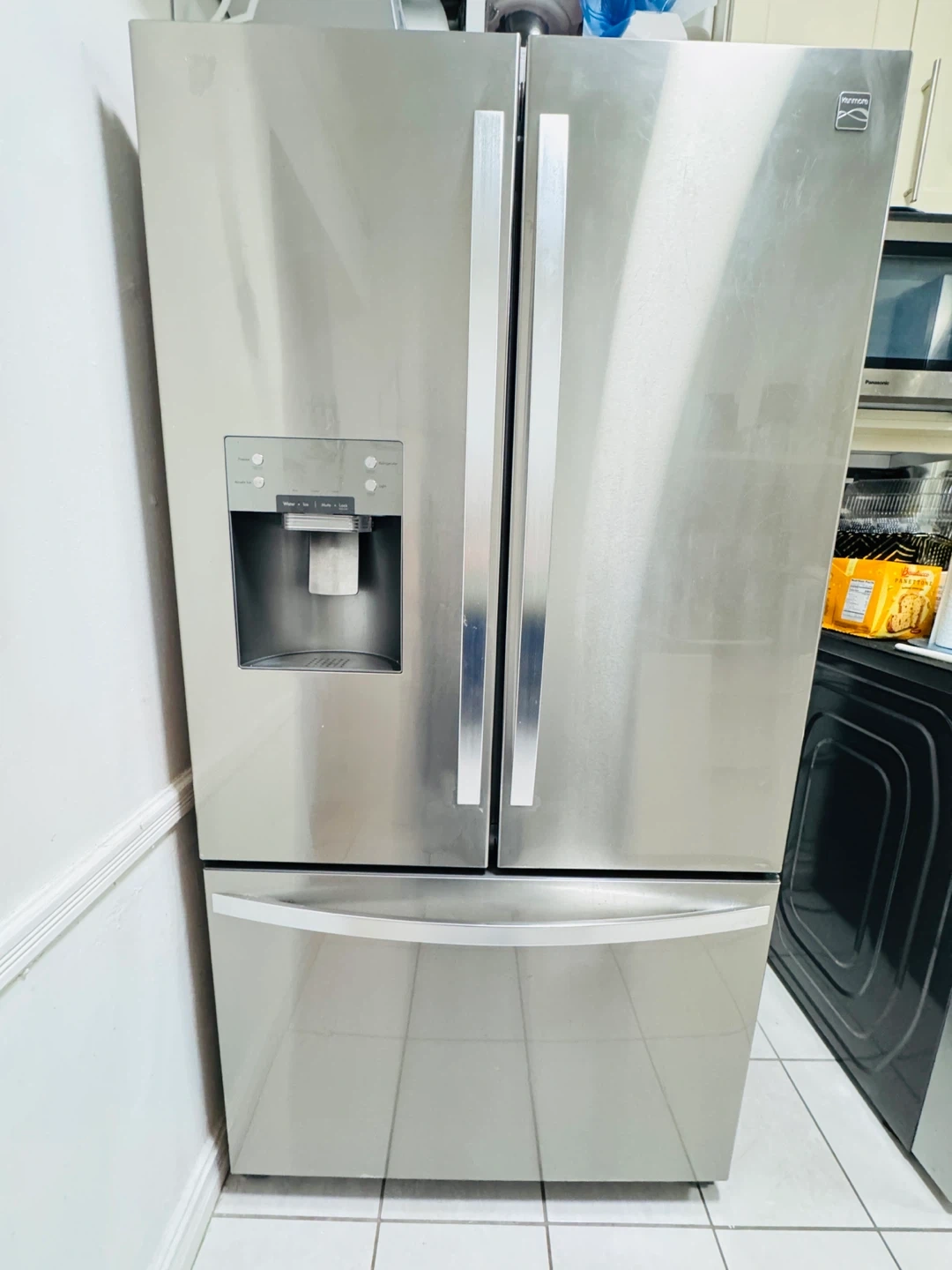 Selling a Kenmore refrigerator in stainless steel. It's in good condition and ready for a new home. It has a water and ice dispenser on the door and plenty of space inside for all your groceries. Feel free to reach out if you're interested!