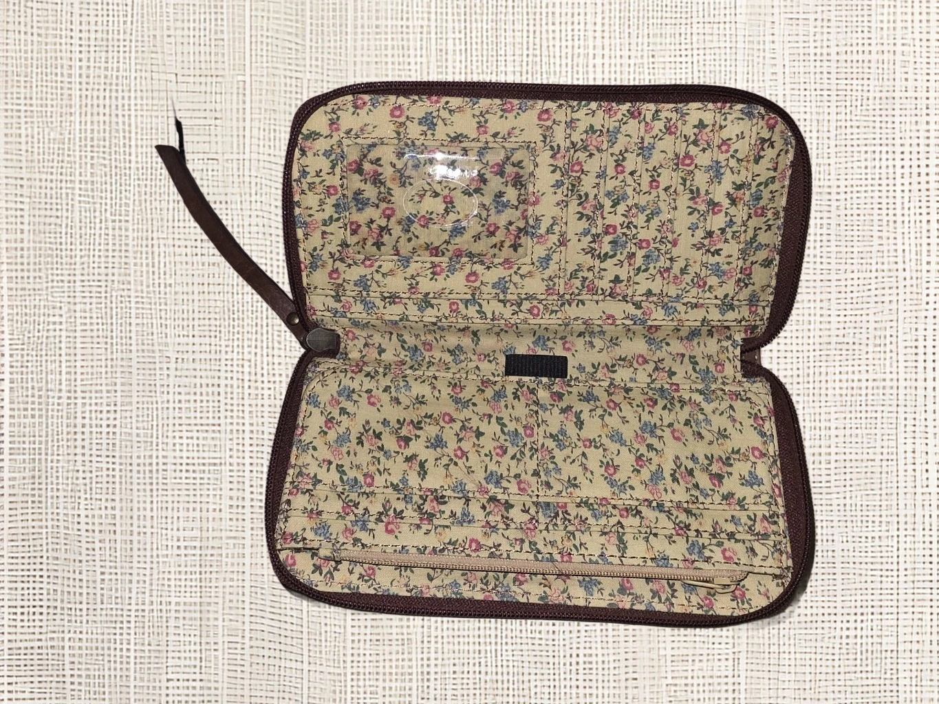 Buy & SellBrown Leather Zip WalletBrown Leather Zip Wallet$15This is a brown leather zip wallet. It has a floral pattern on the inside. It has some signs of wear on the outside.ConditionGoodSizeU0 chats·0 favorites·2 viewsSELLERverifiedLuisCentral Park711 reviewWHERE TO MEETBank of América