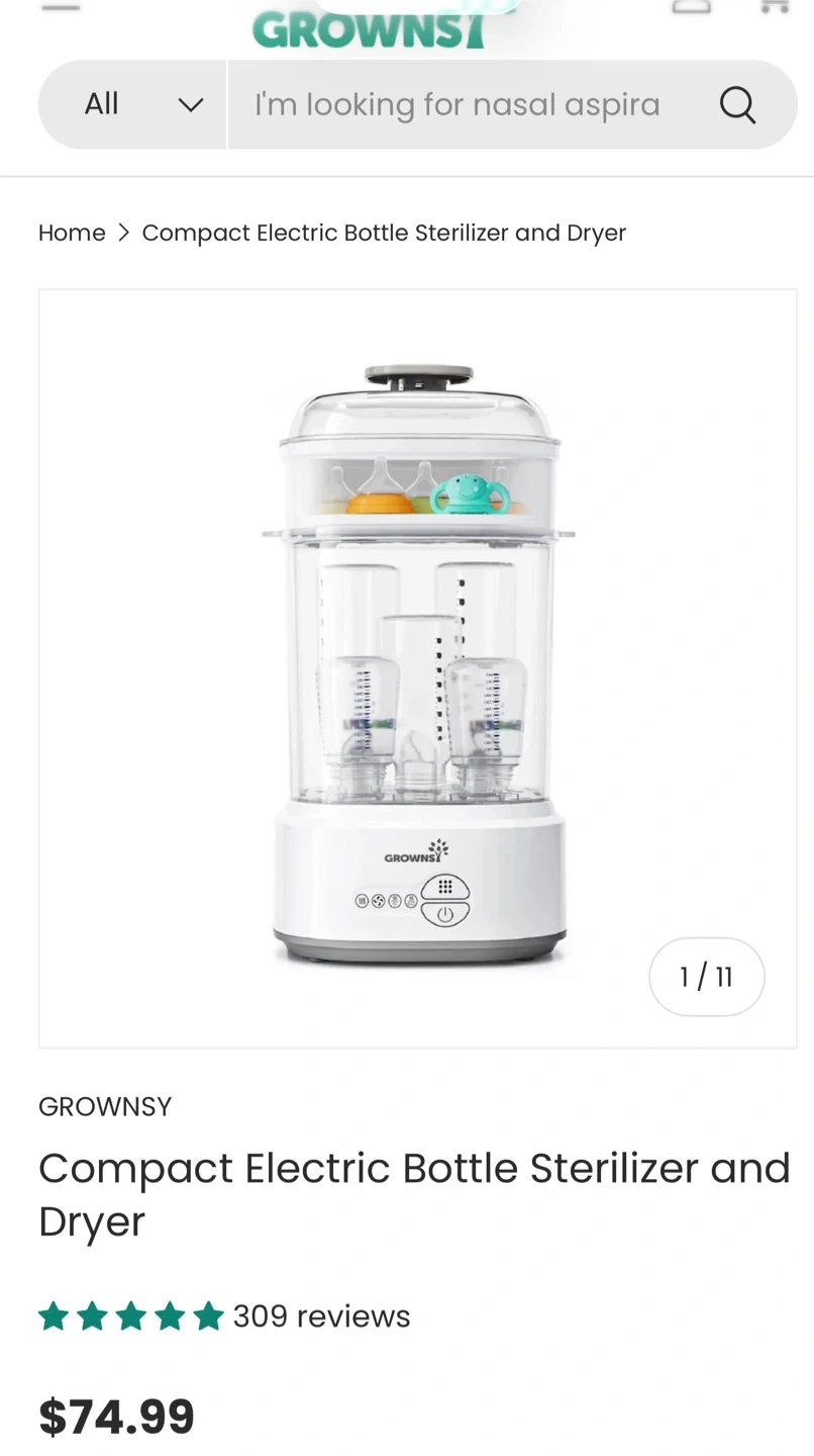 Selling a Grownsy compact electric bottle sterilizer and dryer. It's in great condition and ready to use! It's a handy gadget for keeping your baby's bottles clean and dry. Originally bought for $74.99.