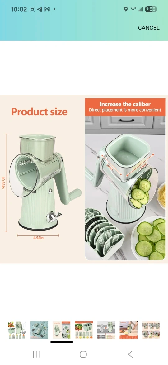 This is a great tool for slicing, shredding, and grinding vegetables! It has a direct placement feature that makes it more convenient to use. The product size is approximately 10.63 inches in height and 4.92 inches in diameter.