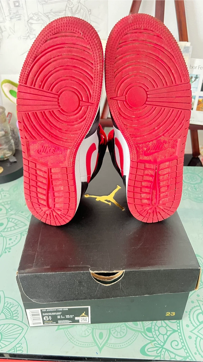 Selling a pair of Air Jordan 1 Mid GS in size 6.5 youth. They come with the original box. The shoes are in great condition, ready for a new owner! Fits women size 7