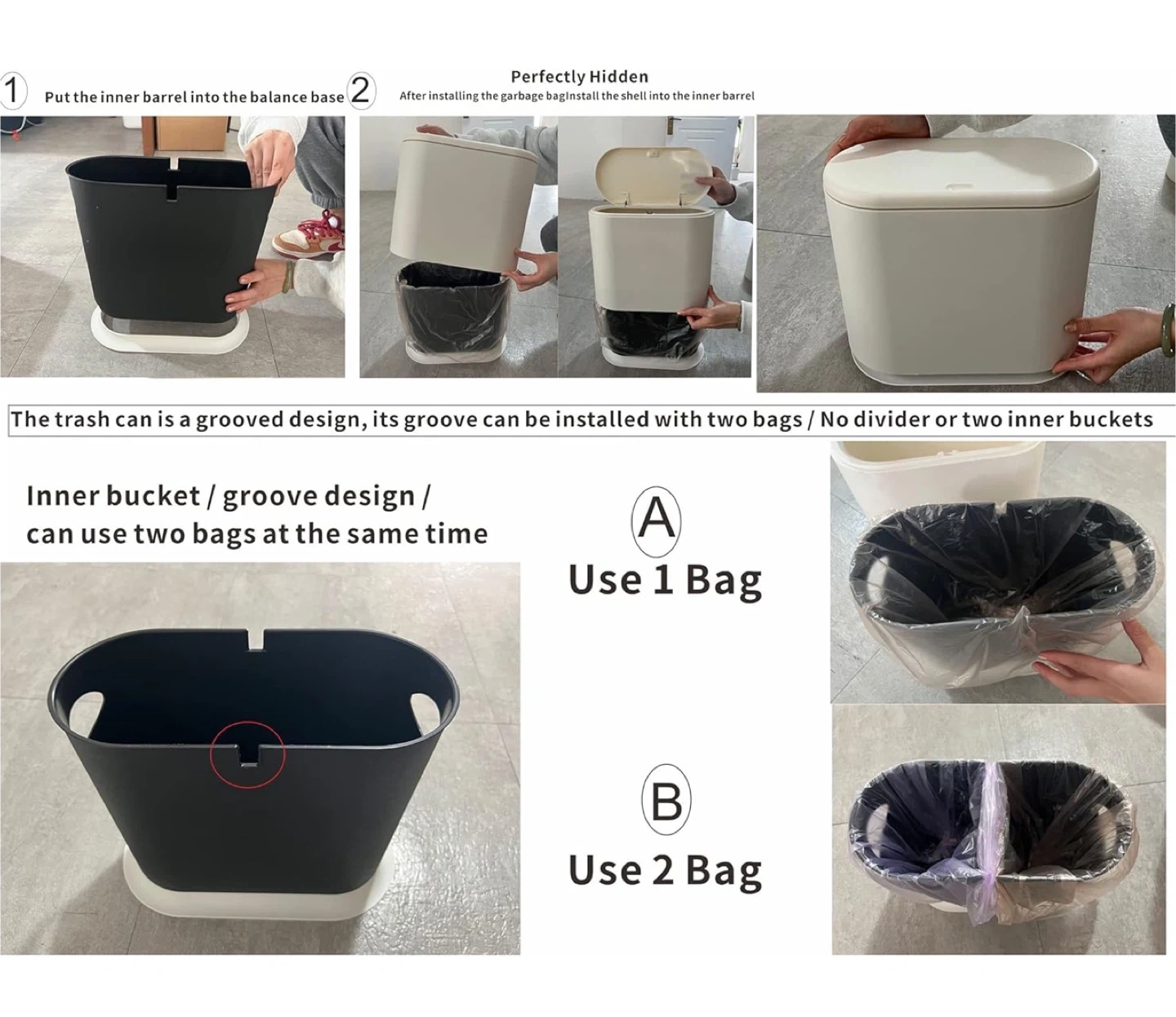 with balance base/ inner bucket/ groove design/ can use two separate bags