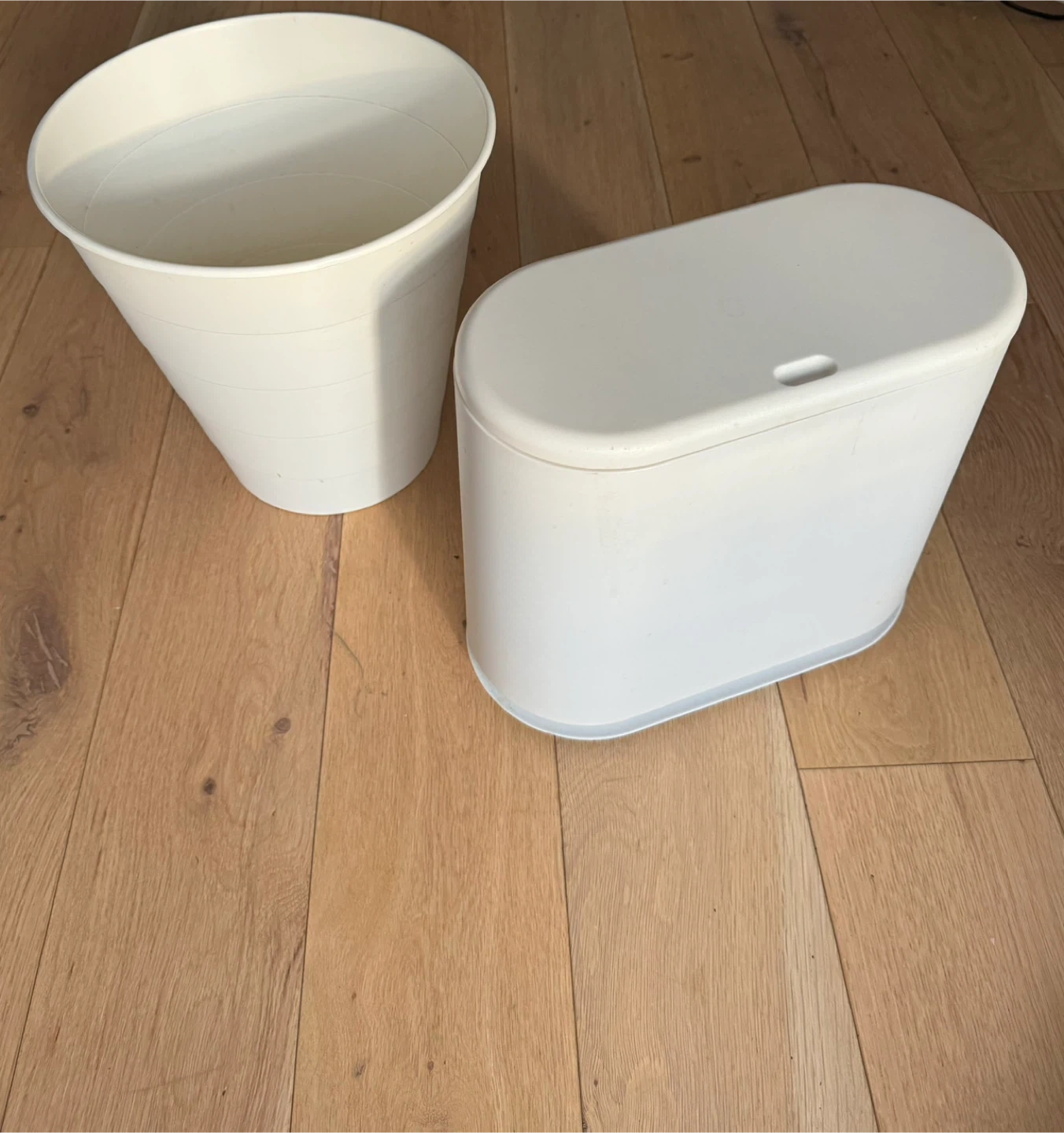 2 White Trash bins Like New! Great design for bathroom or Desk