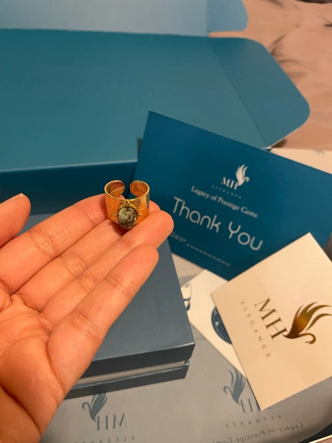 Beautiful 14K gold plated cuff ring with an oval jade gemstone. Adjustable and easy to wear. The textured cuff design gives it a classy, modern look. Waterproof, tarnish-free, and hypoallergenic — great for daily use.