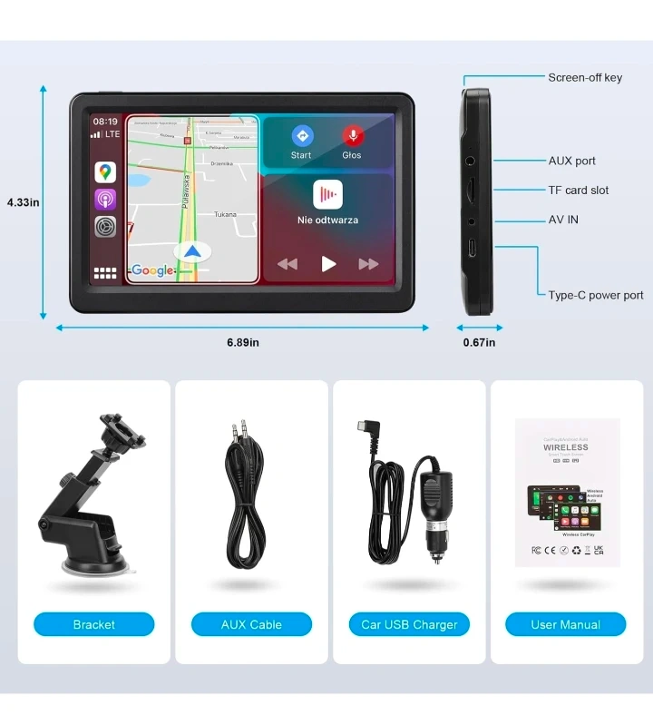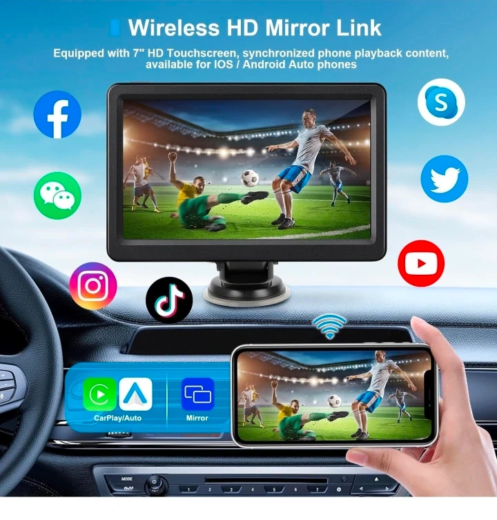 Wireless Carplay Screen for Car, 7" HD Touch Screen Portable Car Stereo for Carplay & Android Auto, Pantalla para Carros with Bluetooth, AUX, FM Transmitter, Voice Control