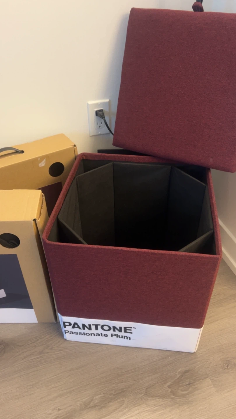 2 red+blue Selling a PANTONE storage ottoman in Passionate Plum! It's in great shape and comes with the box. This ottoman is perfect for adding a pop of colour and extra storage to any room