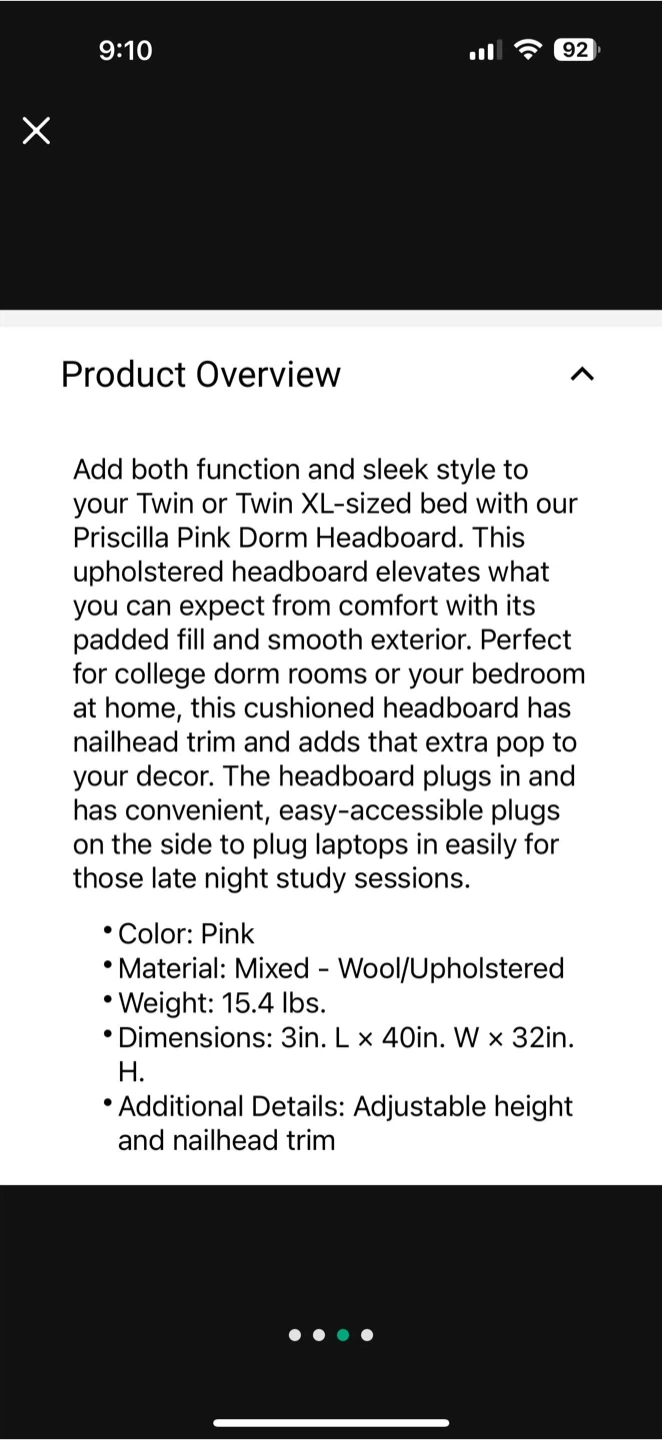 Add both function and sleek style to your Twin or Twin XL-sized bed with this Priscilla Dorm Headboard! It elevates what you can expect from comfort with its padded fill and smooth exterior. It's perfect for college dorm rooms or your bedroom at home.