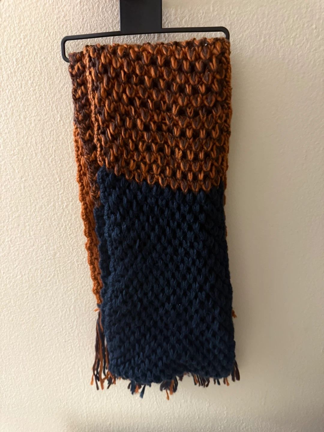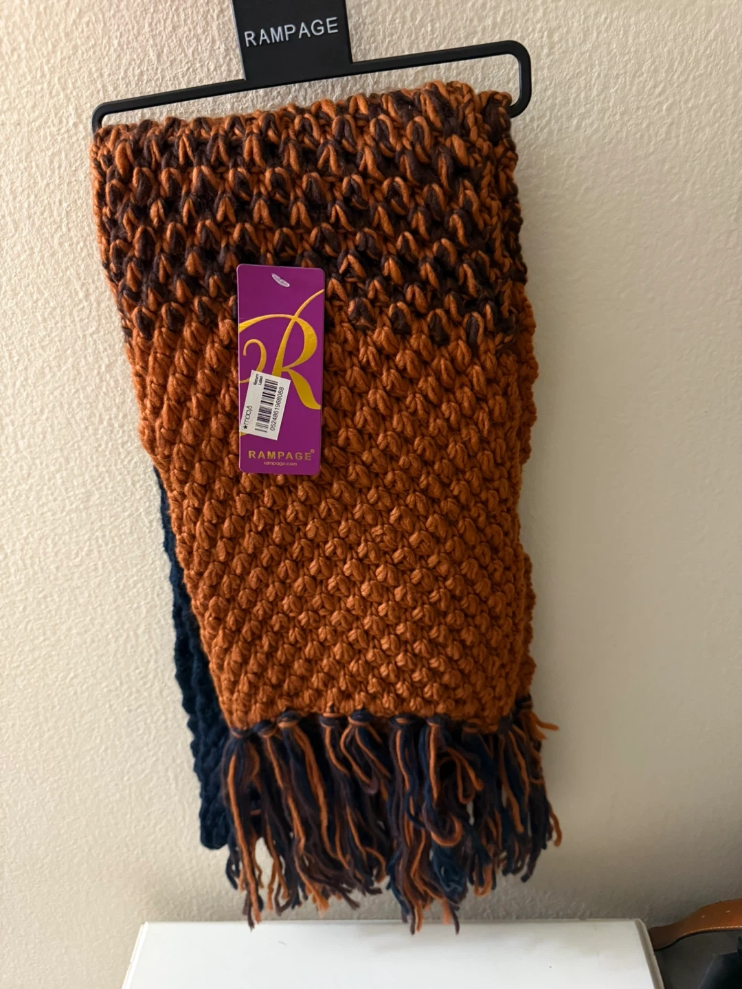 I have a Rampage two-tone knit scarf for sale! It features a unique blend of colors and a cozy knit texture. Perfect for adding a stylish touch to any outfit. It's made of soft material and is in great condition!