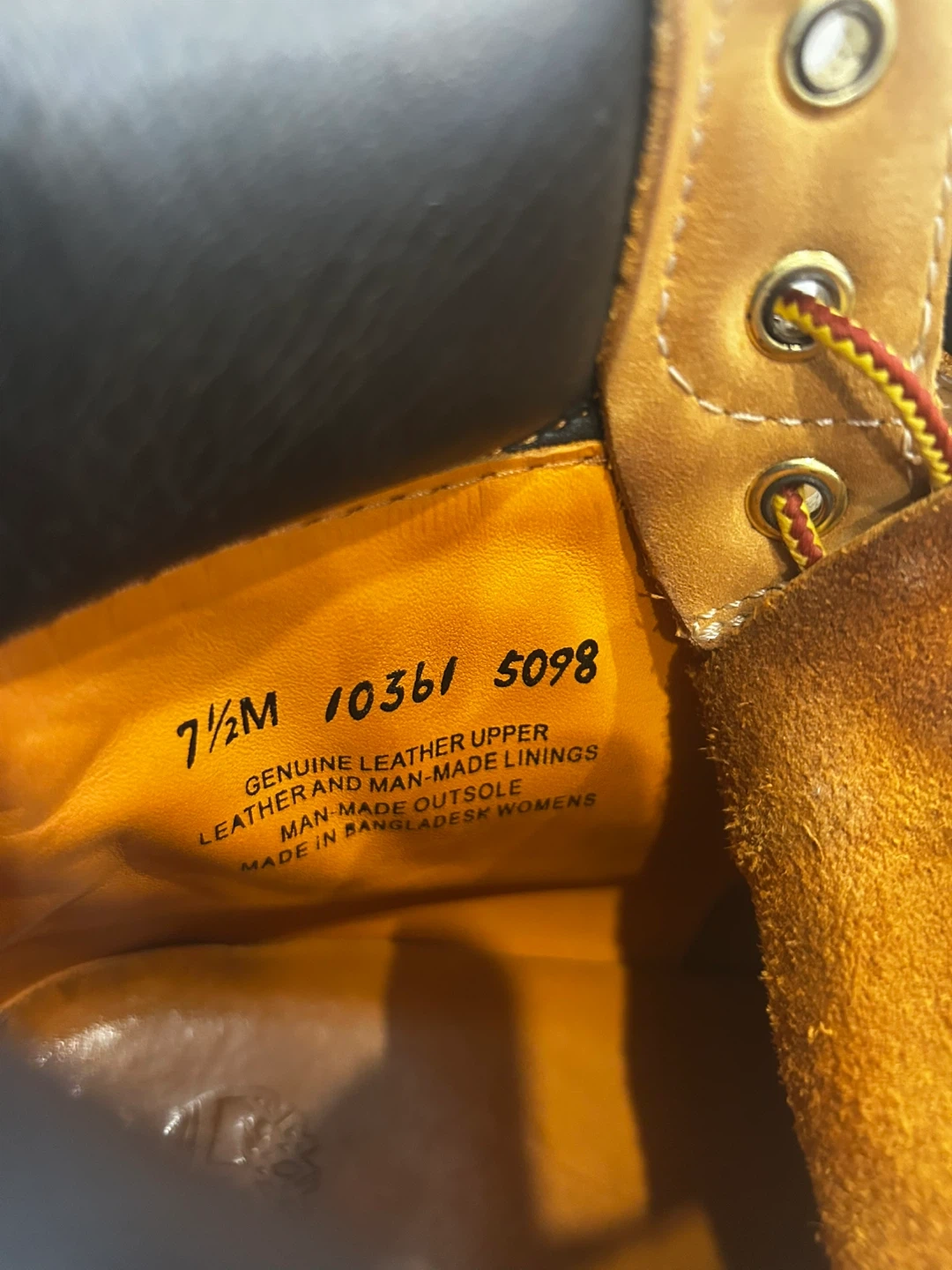 Selling a pair of Timberland boots in women's size 7.5. They are in good condition and come with the original box. The upper is genuine leather, and the outsole is man-made. Perfect for all weather!