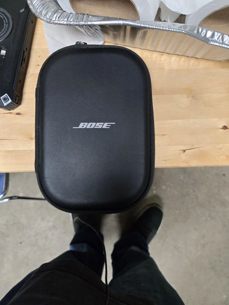 Selling a pair of Bose QuietComfort 45 headphones in black. They come with their original case for easy storage and protection. These headphones are known for their excellent noise cancellation and comfortable fit, making them perfect for travel or just relaxing at home. Great sound quality and very portable