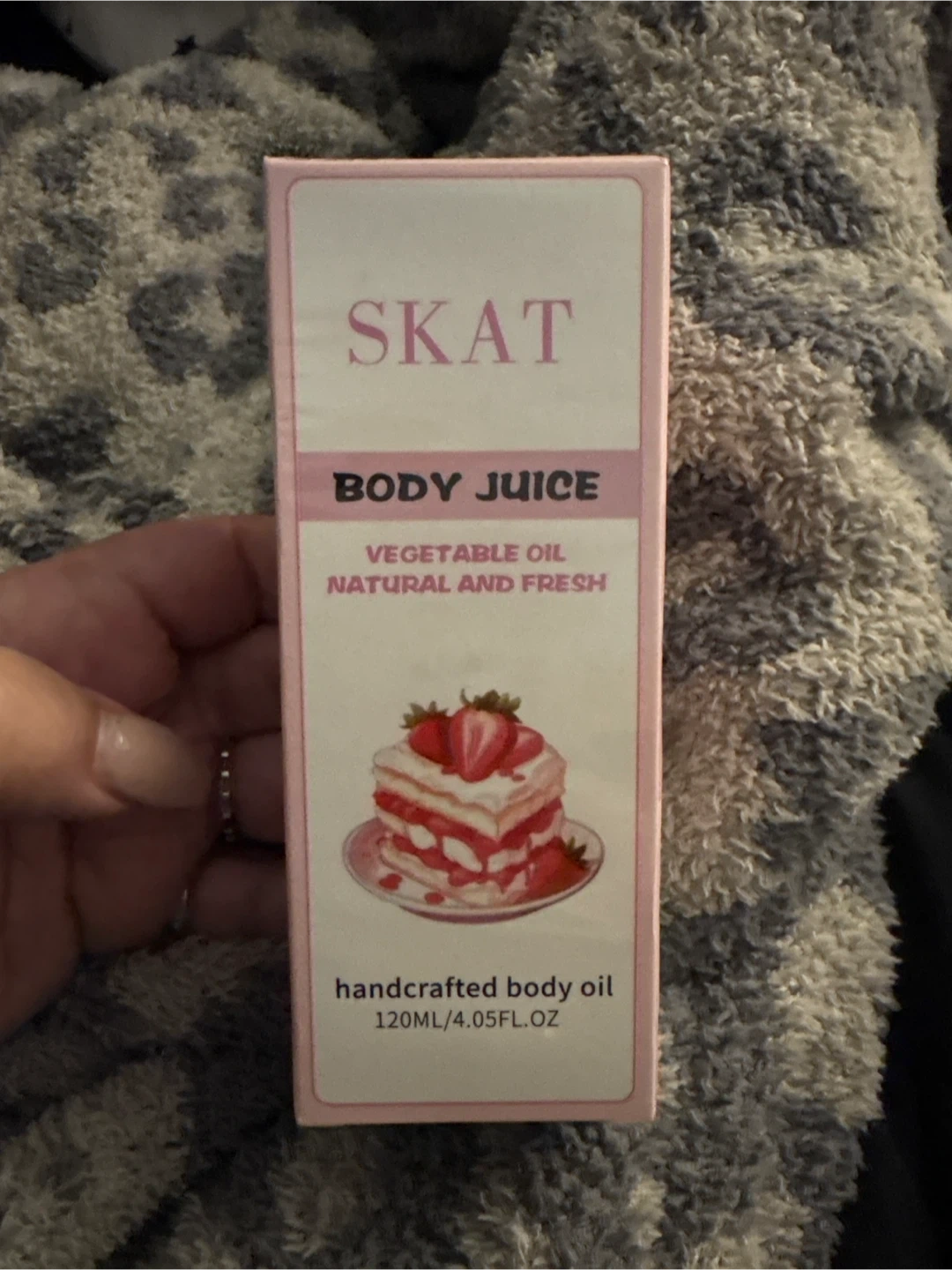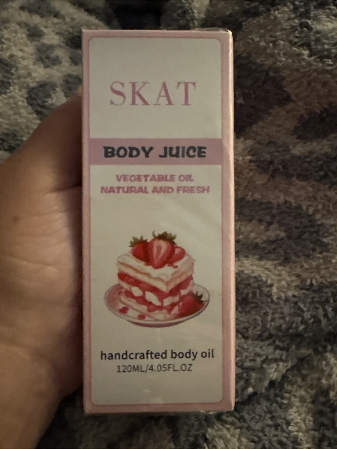 SKAT Body Juice handcrafted body oil. It's a vegetable oil that is natural and fresh. The bottle contains 120mL/4.05FL.OZ. It moisturizes and is not rough, making the skin delicate and smooth, hydrated and tender in appearance