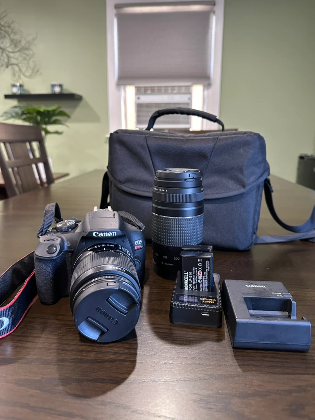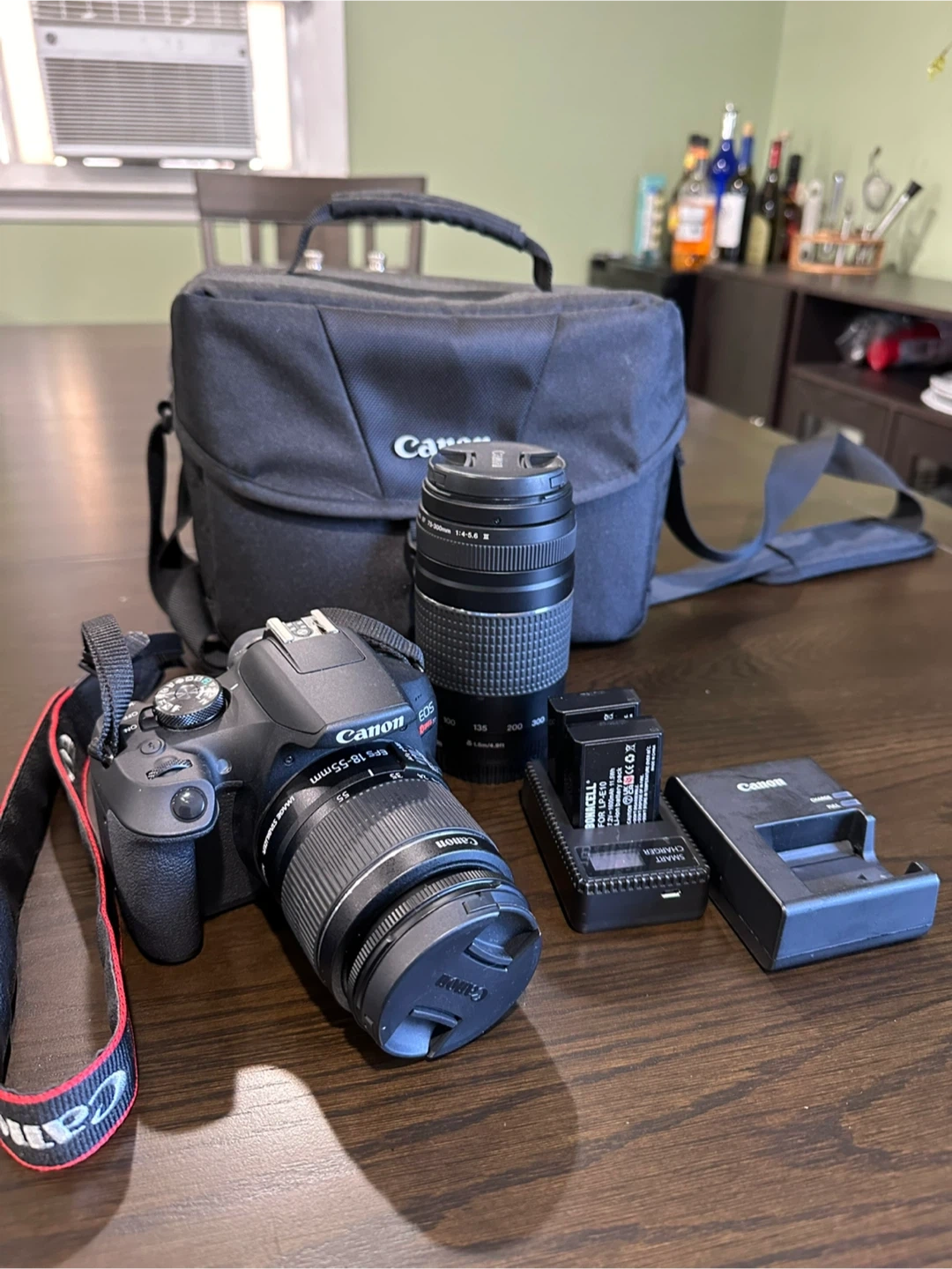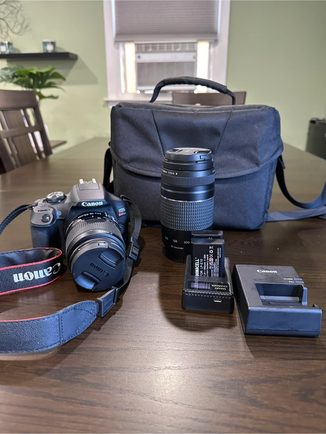 - Two lenses: Canon EF-S 18-55mm and Canon EF 75-300mm