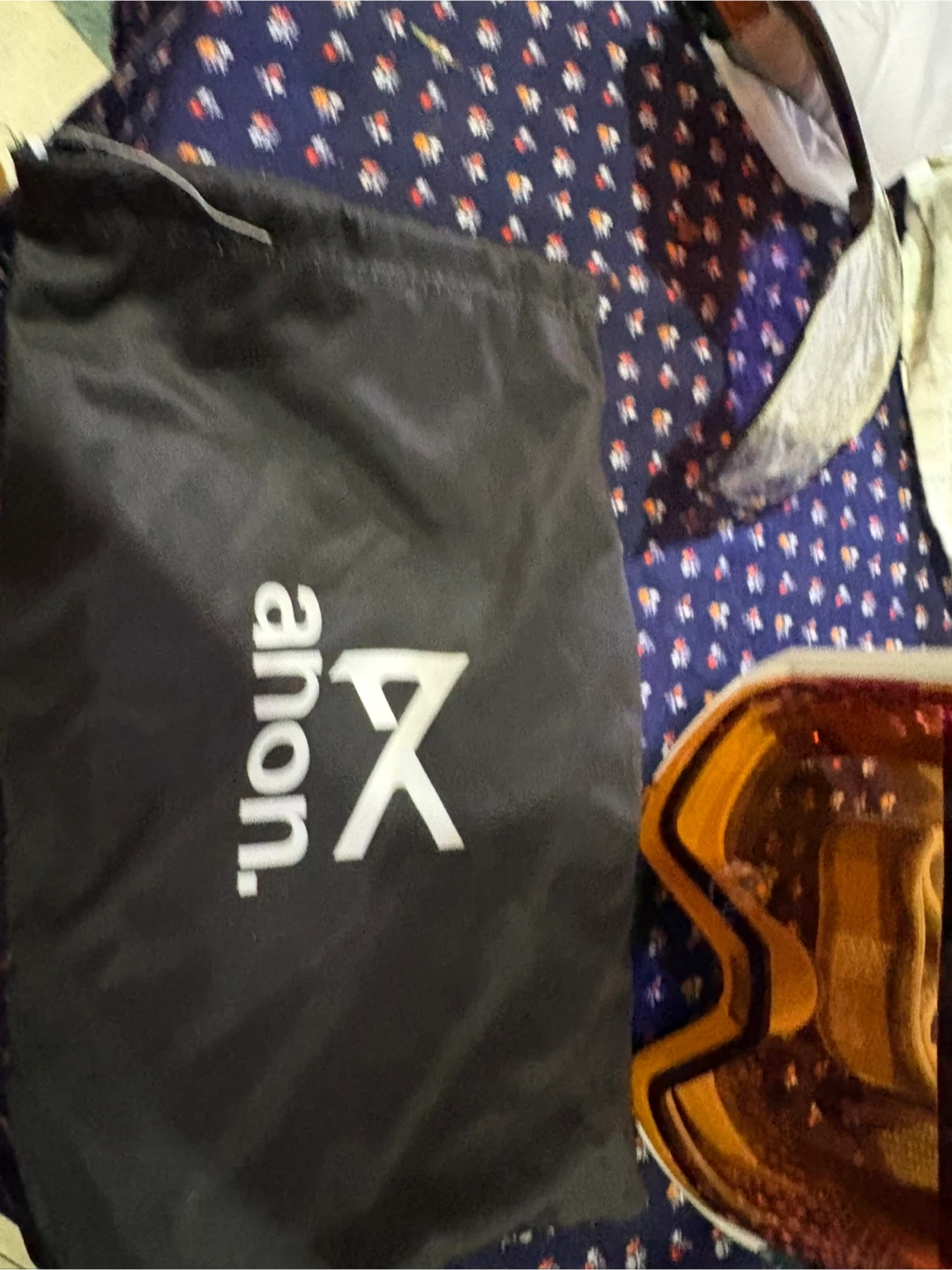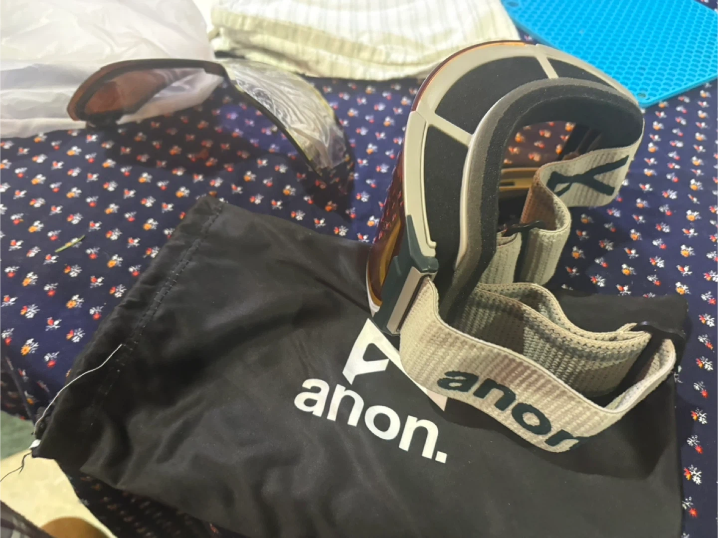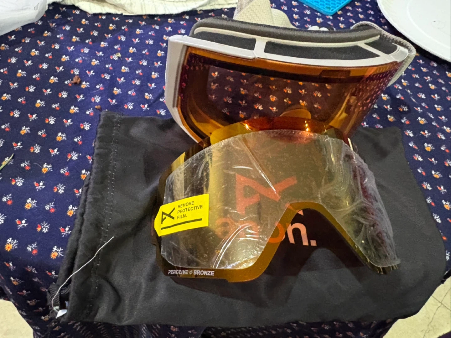 Selling a pair of Anon snow goggles with a Perceive Bronze lens. The goggles come with a black bag for storage and protection. The lens has a protective film to prevent scratches. Great for hitting the slopes!