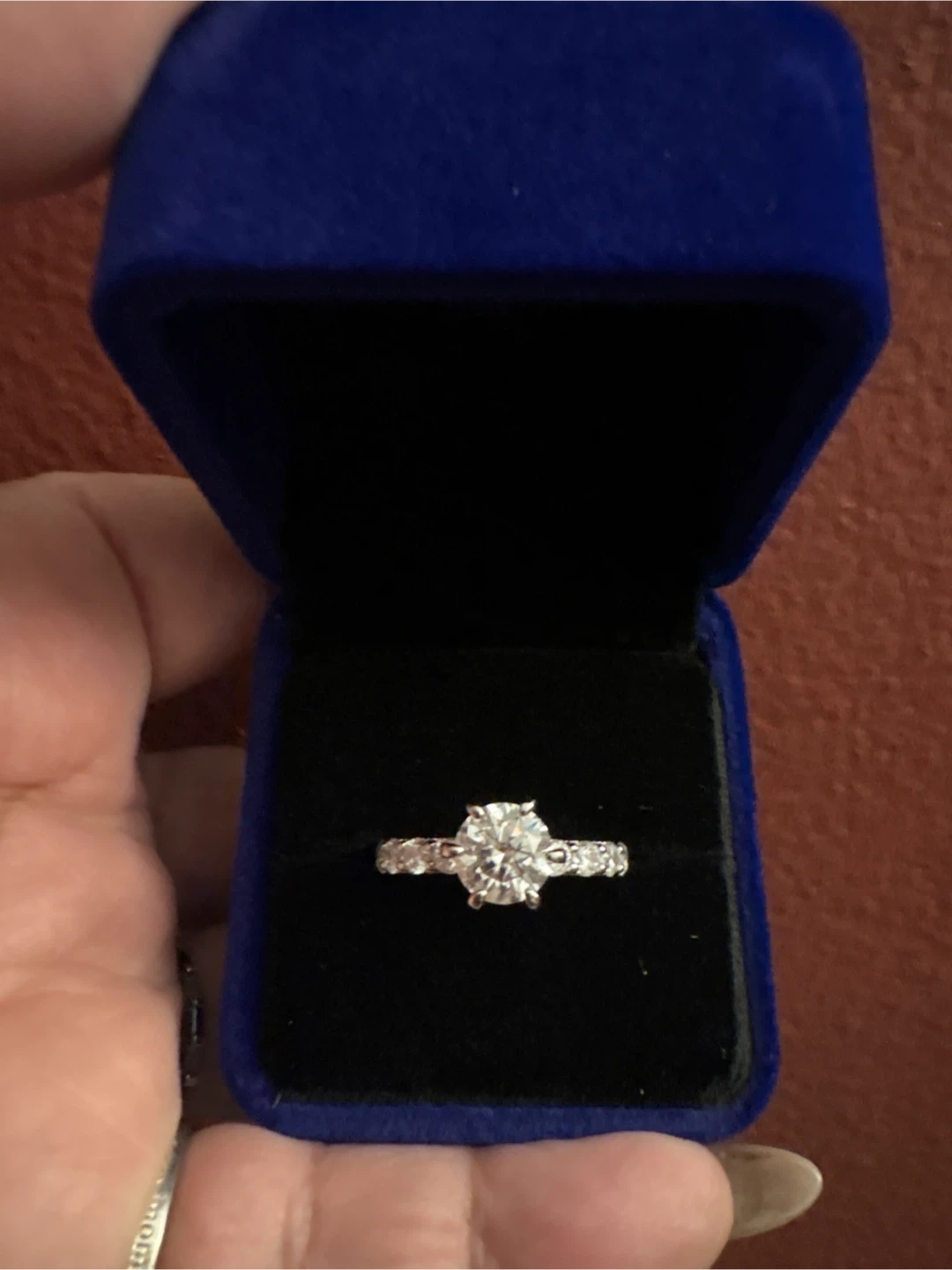 Selling a beautiful 925 Sterling silver 2 carat Moissonite diamond engagement ring! It comes in a blue velvet box, perfect for gifting or safekeeping. New