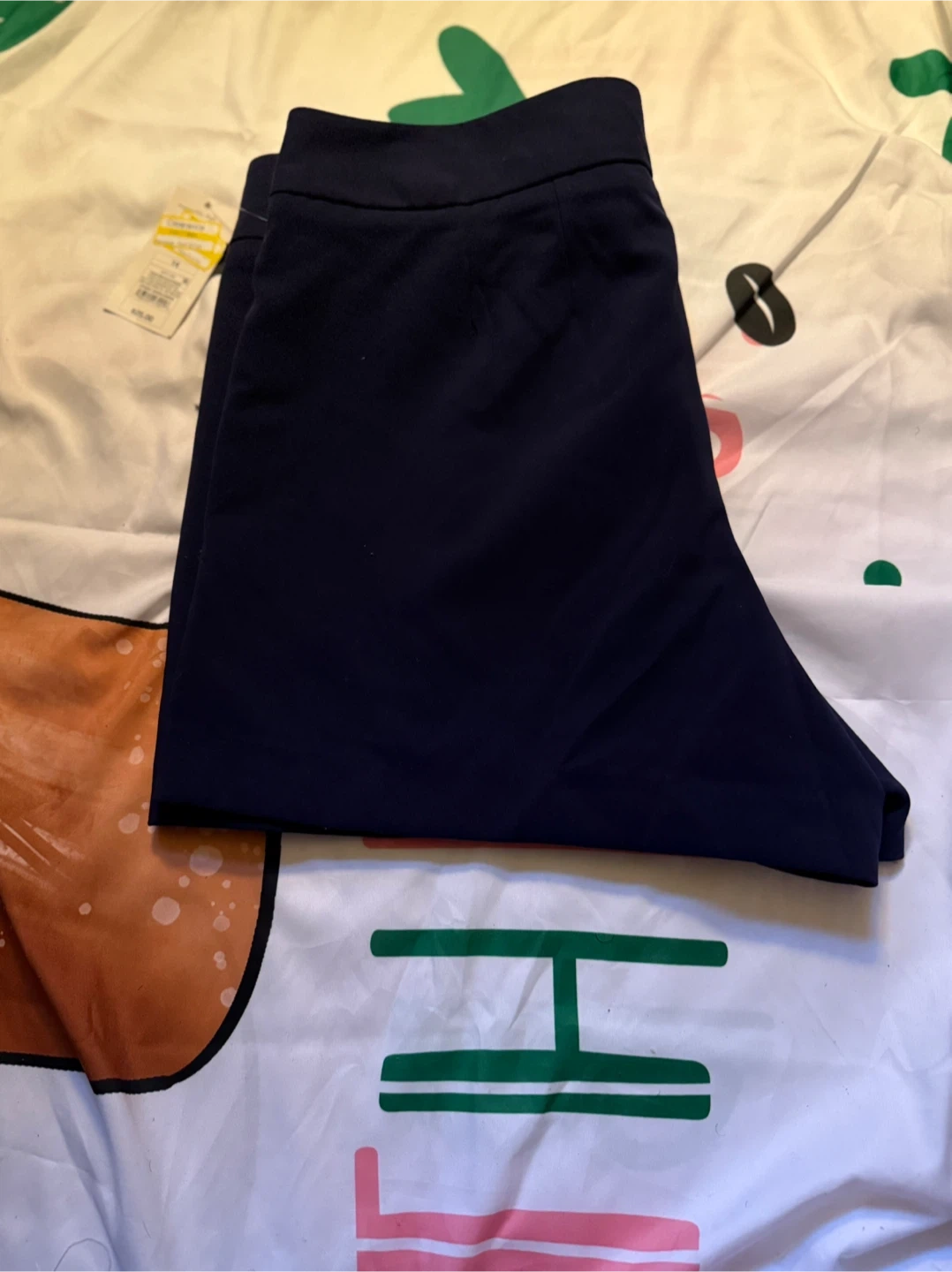 Selling a pair of women's shorts from Target! They're a size 14 and in a stylish navy blue color. Brand new with tags!