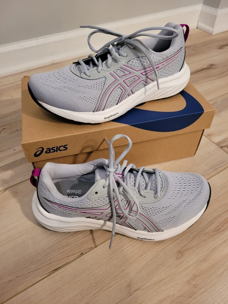 Size 9 wide. I'm selling a pair of Asics GEL-Nimbus 25 running shoes for women! They're new with the original box. These shoes feature Amplifoam+ technology for a comfortable and responsive ride. Perfect for your next run!