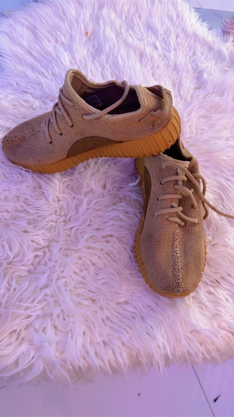 Selling a pair of Adidas Yeezy Boost 350 V2 in the Flax colorway. These shoes are stylish and comfortable, perfect for everyday wear. They are in good condition and ready for a new owner!
