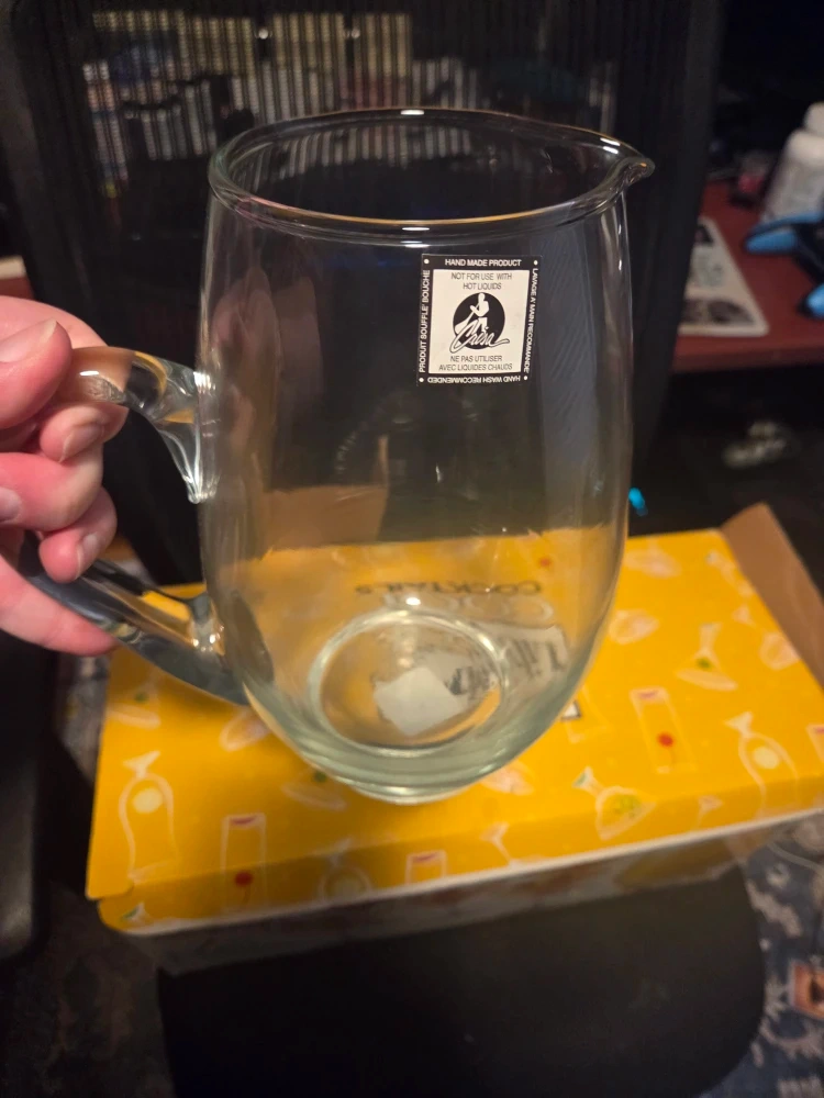 Like new. Used only 4 of the glasses once. In original box, pitcher still has stickers on it. Giftable.