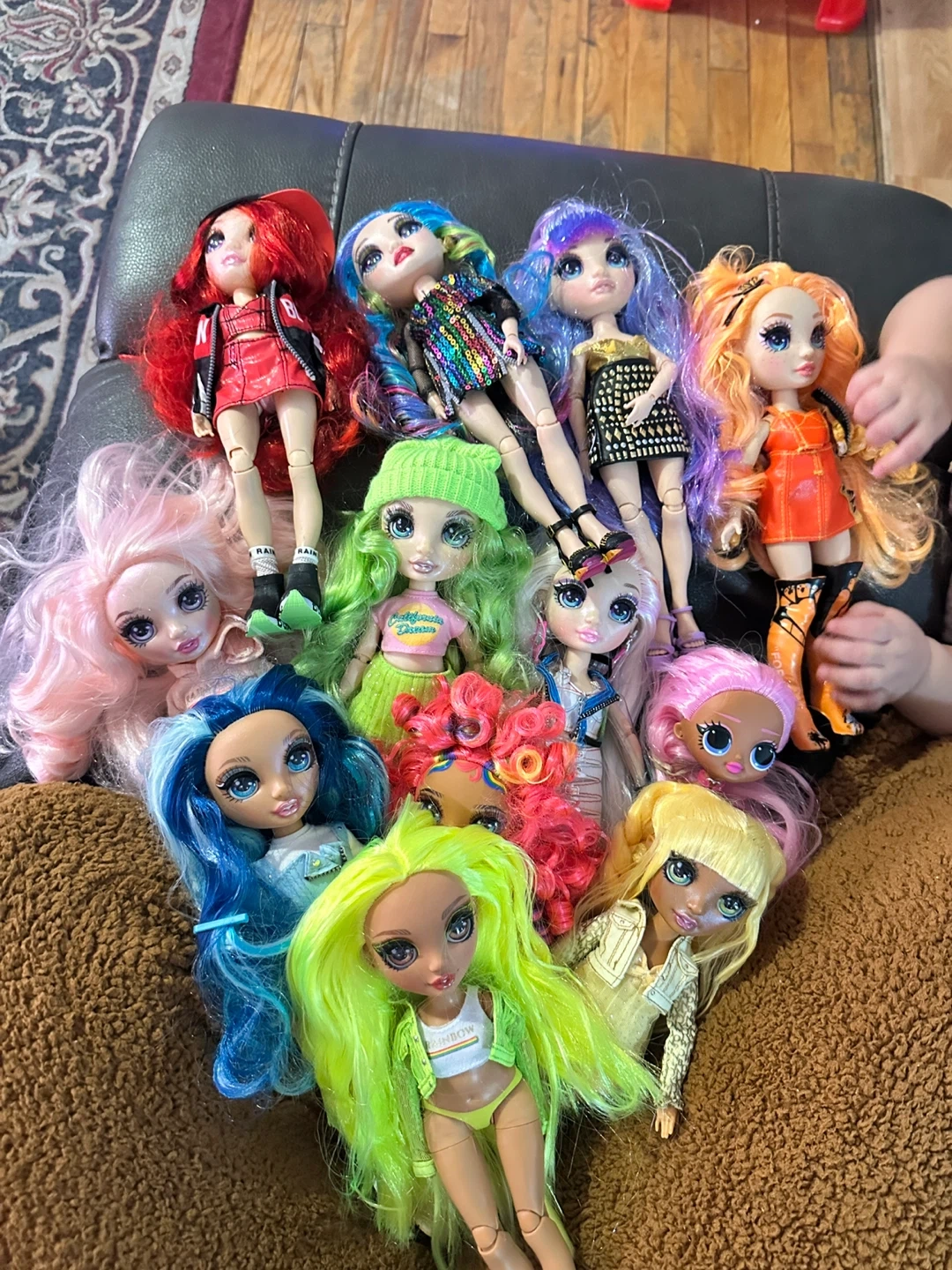 Selling a set of 11 Rainbow High dolls! They're in great condition and ready for a new home. Each doll has its own unique style and vibrant colors. Perfect for collectors or kids who love fashion dolls!