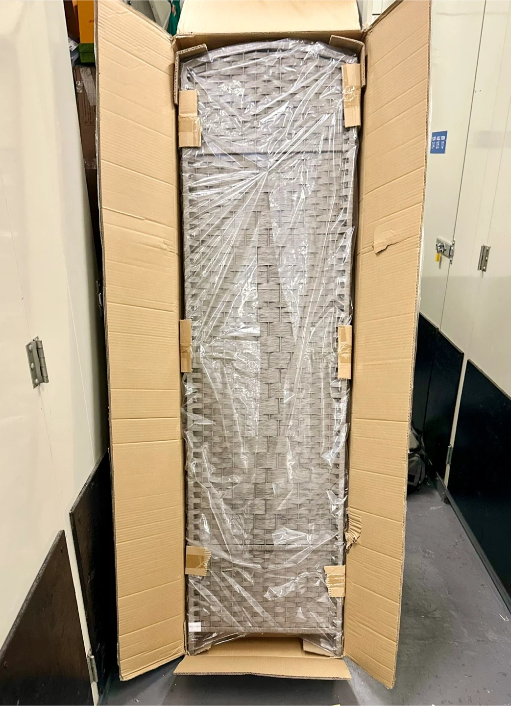 This 6-panel rattan room divider is brand new in its original box! It's a stylish and practical way to create privacy or divide a space.
