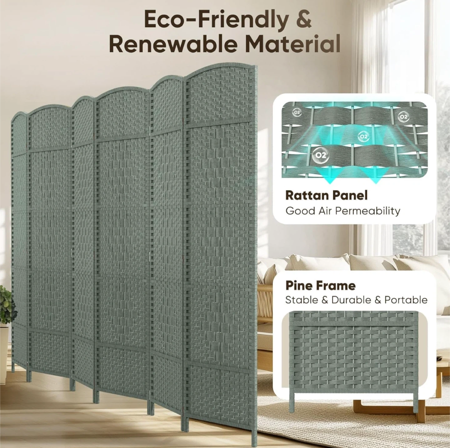Rattan Room Divider - 6 Panel - Gray - New in Box