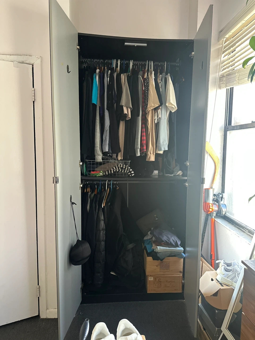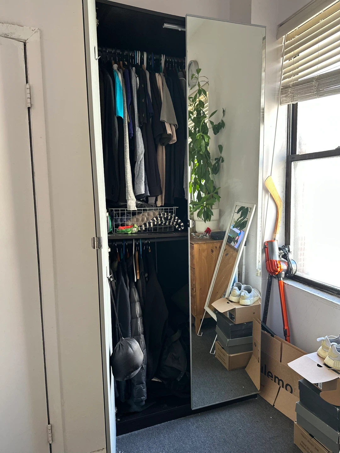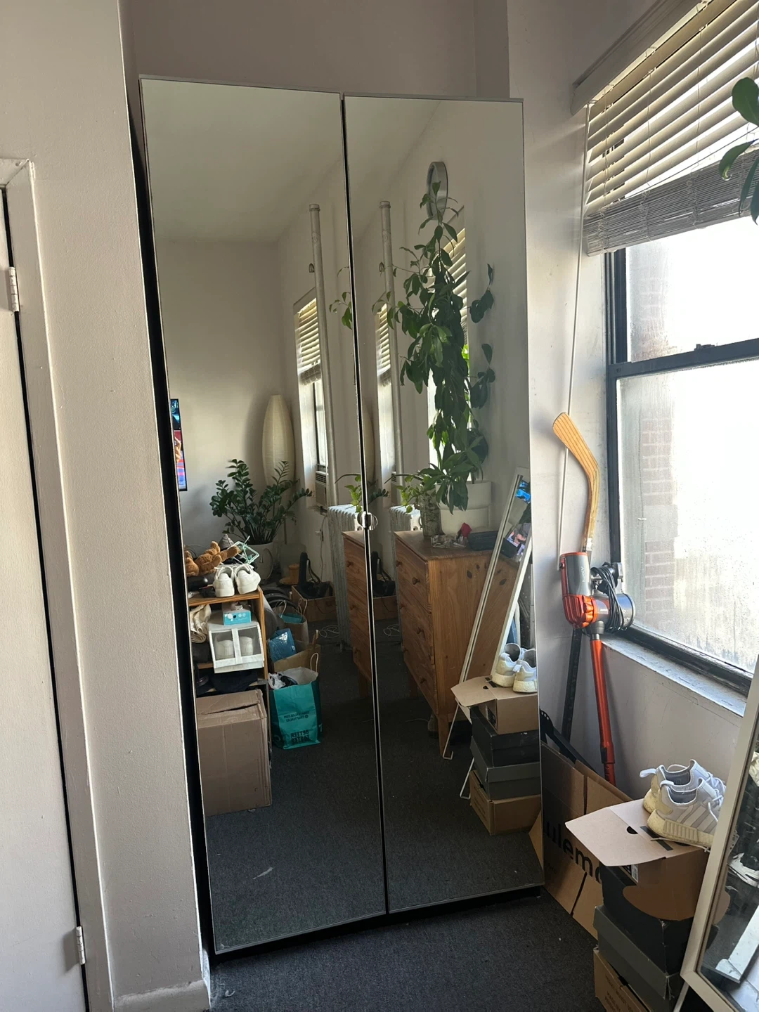 Selling a wardrobe with mirrored doors. It's in good condition and has plenty of space for your clothes and other items. Great for adding storage and a full-length mirror to any room