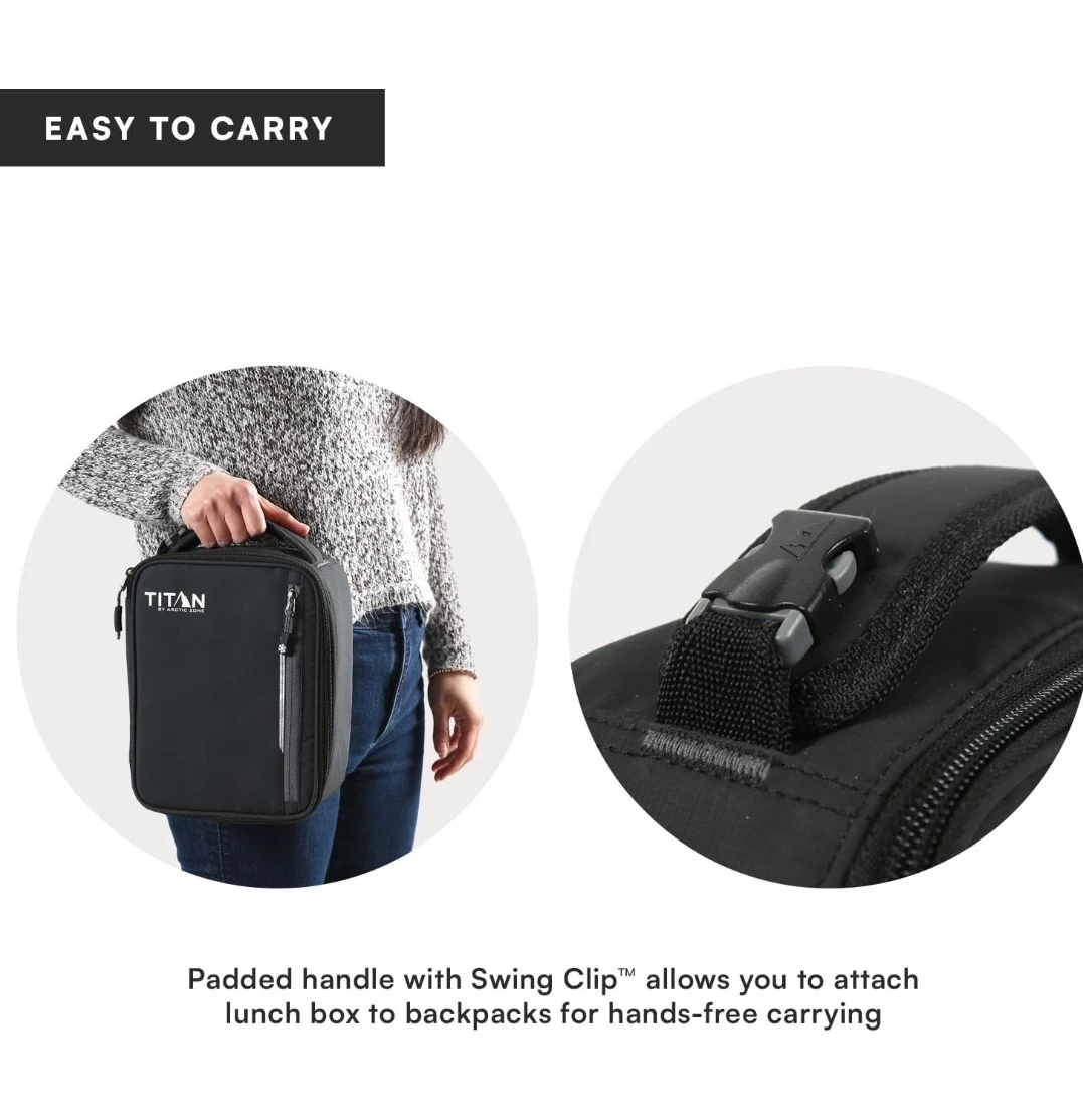 Keep your lunch cool with this Titan by Arctic Zone Black lunch box! It features SuperFoam insulation and a Therma-Flect radiant barrier interior to keep your food and drinks fridge cold for up to 6 hours or chilled for up to 12 hours.