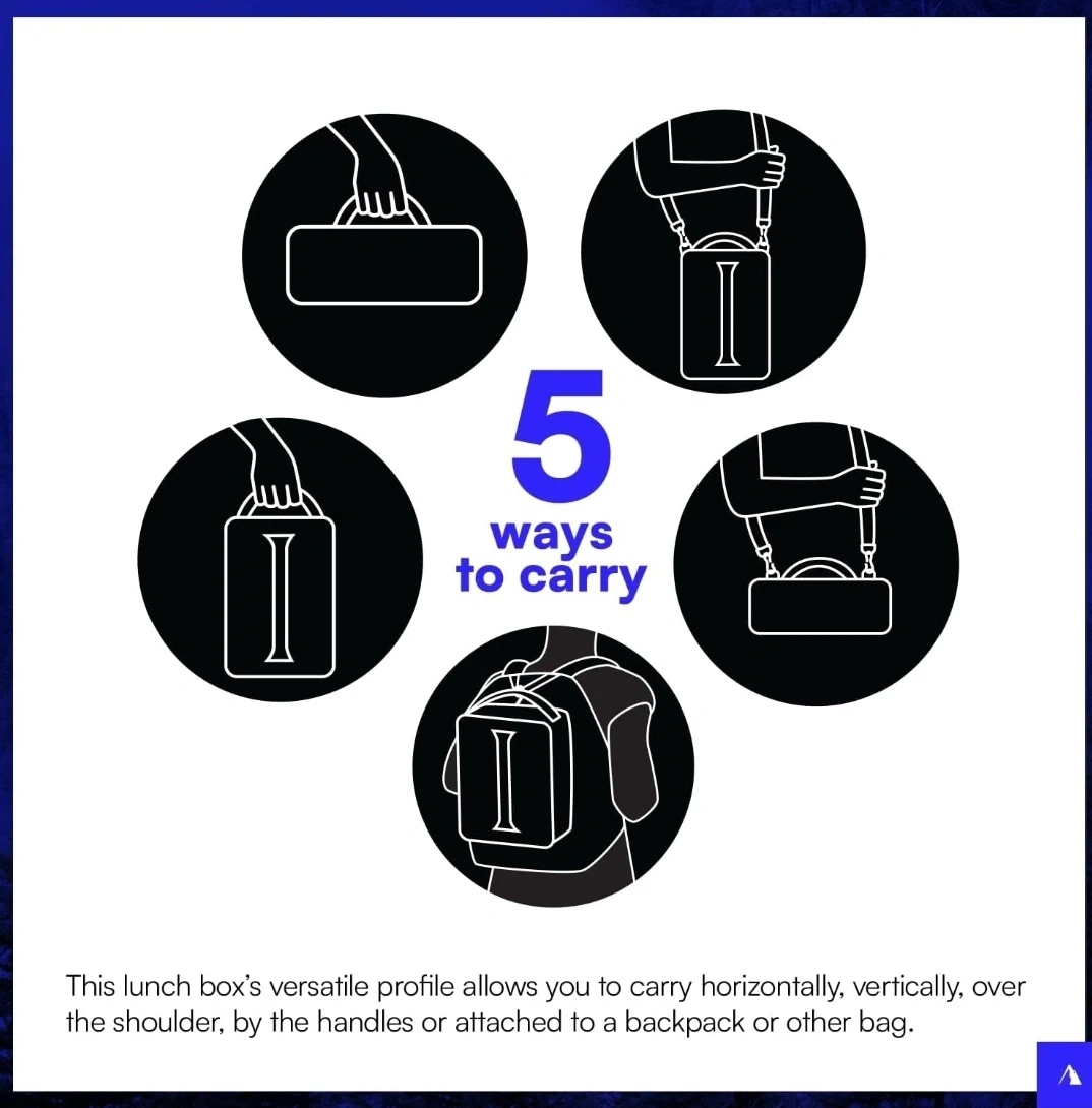 It also has an Ultra Safe leak-proof and easy-to-clean lining, Includes 4 piece Leak Proof Food Containers and Two Reusable Ice Walls, Adjustable Shoulder Strap.