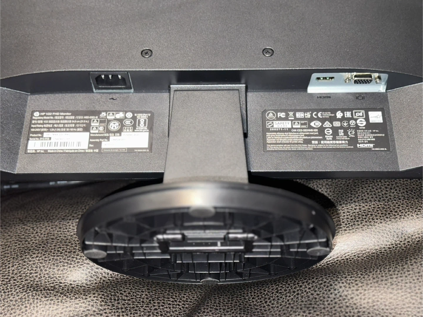 Selling an HP V22 FHD monitor model HSD-0065-W with a resolution of 1920 x 1080, 21.5 Inches, 50/60 Hz. It's in good condition and ready for a new setup!