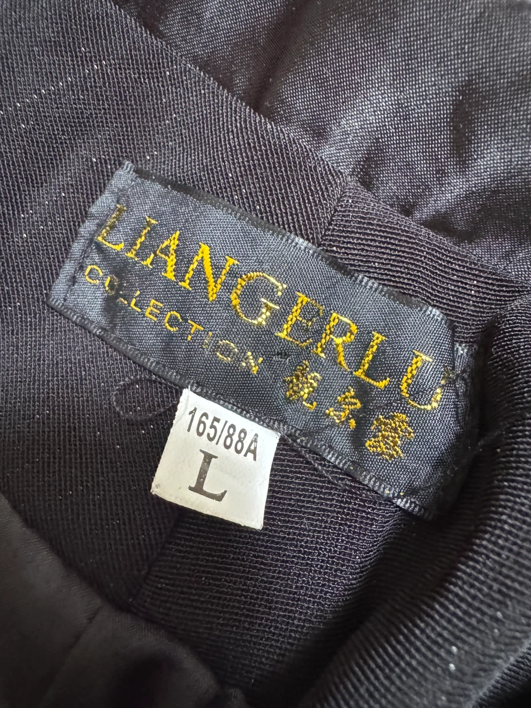 A classic black suit from Liangerlu Collection. It's a size L. Perfect for work or a special occasion!