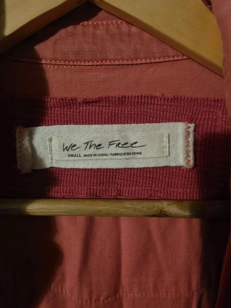 This is a We The Free ruffled western shirt. It's a size small and has a unique, stylish design. I haven't get a chance to wear this shirt once. Perfect for adding a touch of western flair to your wardrobe!