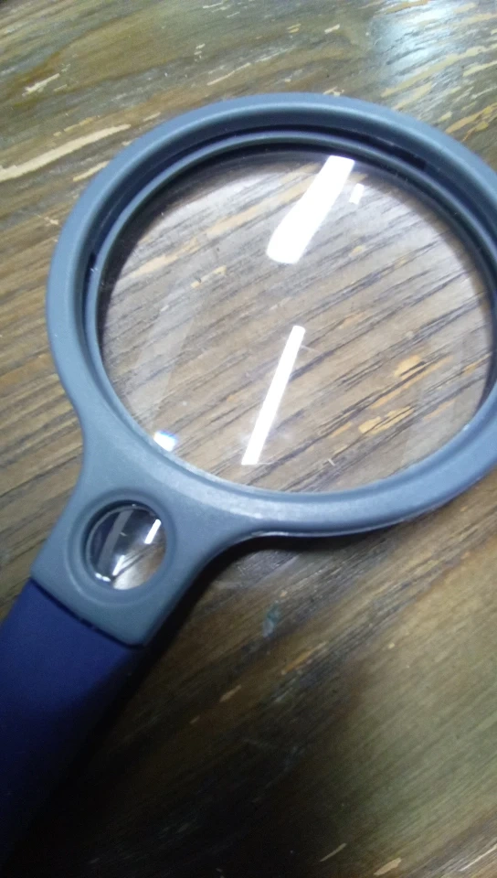 This is a blue handheld magnifying glass in great condition! It's perfect for reading small print or examining details up close. It's lightweight and easy to hold, making it a handy tool for everyday use