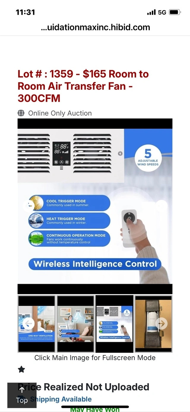This is a room to room air transfer fan with 300CFM airflow. It operates quietly at 46dB with 5 adjustable wind speeds, and wireless intelligence control. This item is new, never been installed, and comes with all the necessary hardware. If the ad is up, it's available!