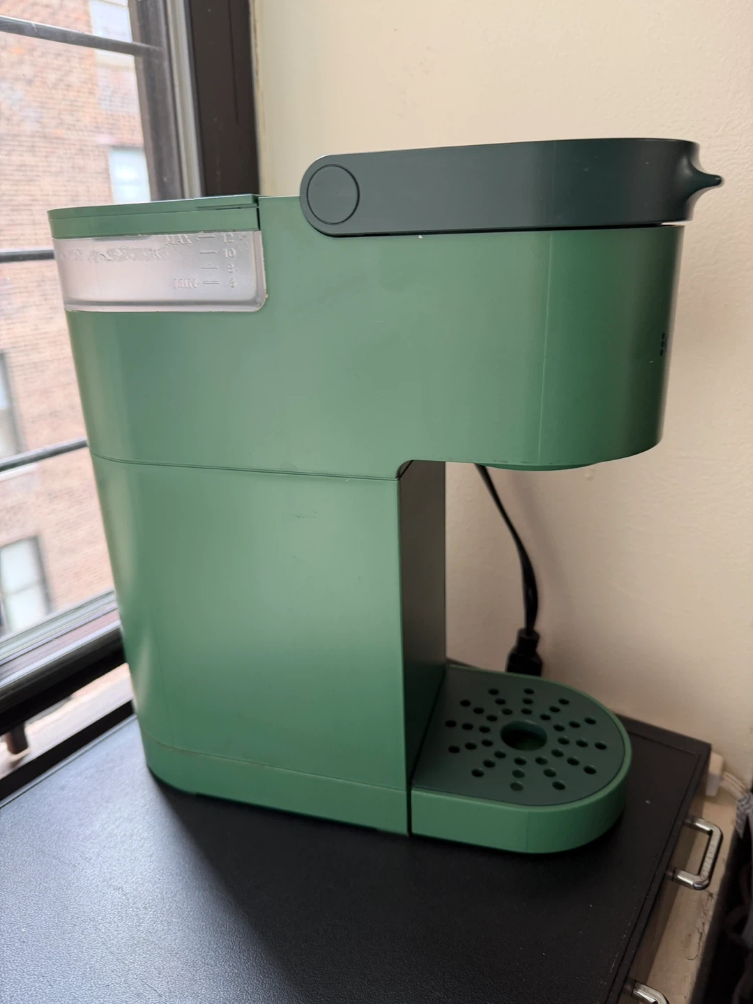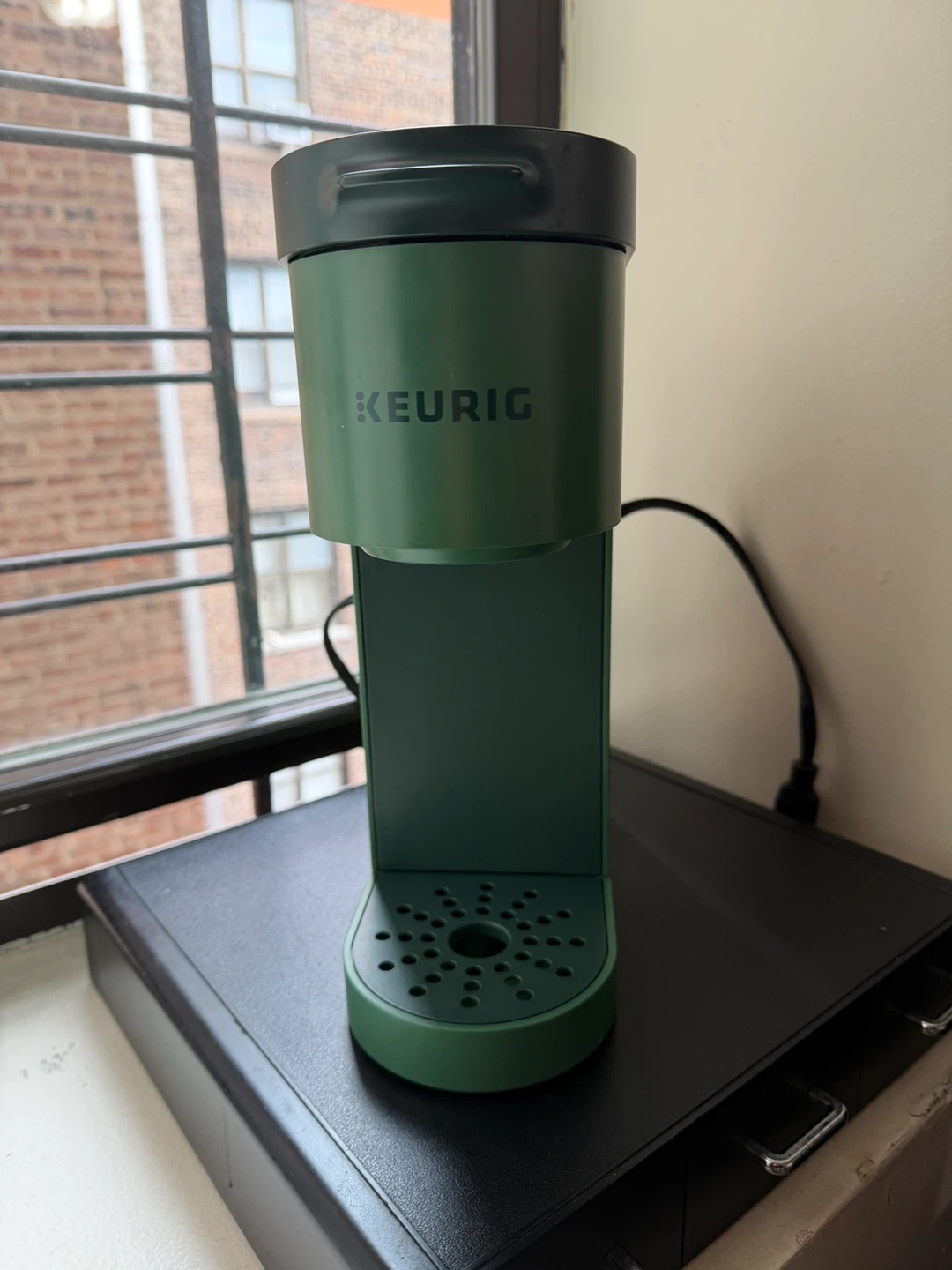 Here is a Keurig K-Express Essentials Single Serve K-Cup Pod Coffee Maker. It is green in color. This is perfect for a single cup of coffee